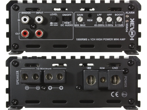 1-канальний автомобільний підсилювач потужністю 1x600/1200/1800W, стабільний до 1Ω, цифровий (D), мостовий (Bridge-Link), входи сигналу Hi/Lo, Auto Turn On/Off, малі розміри