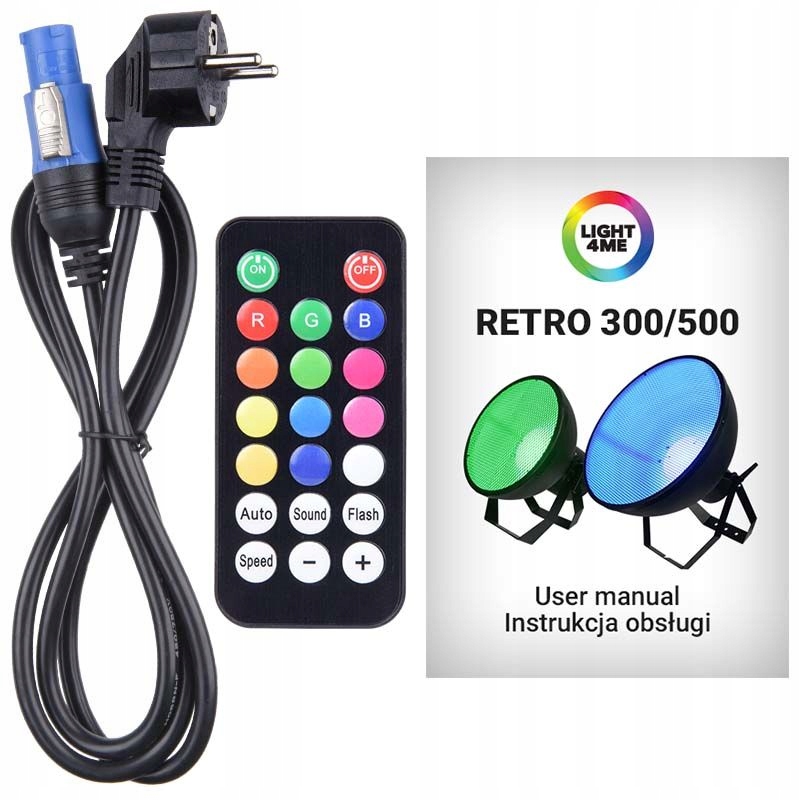 отримана з найкращих візерунків Light4me retro 500 була оснащена сильними, 60-ватними світлодіодними діодами , що випромінює яскраві та насичені кольори у палаті rgba (червоний, гриле, синій, амбер). Діод ✅ amber дозволяє отримати додатковий, бурштиновий колір, якого традиційні фари RGB не можуть досягти. Півсфейрований відбивач з центральною діафрагмою означає, що ✅ фара не ображає око і може бути спрямована безпосередньо на аудиторію чи артистів на сцені. Ефективність роботи з пристроєм піднімається побудованими -in -макросами кольорами , різними режимами змішування кольорів , функціонування строб , а також повного контролю за швидкістю змін у цих ефектах.