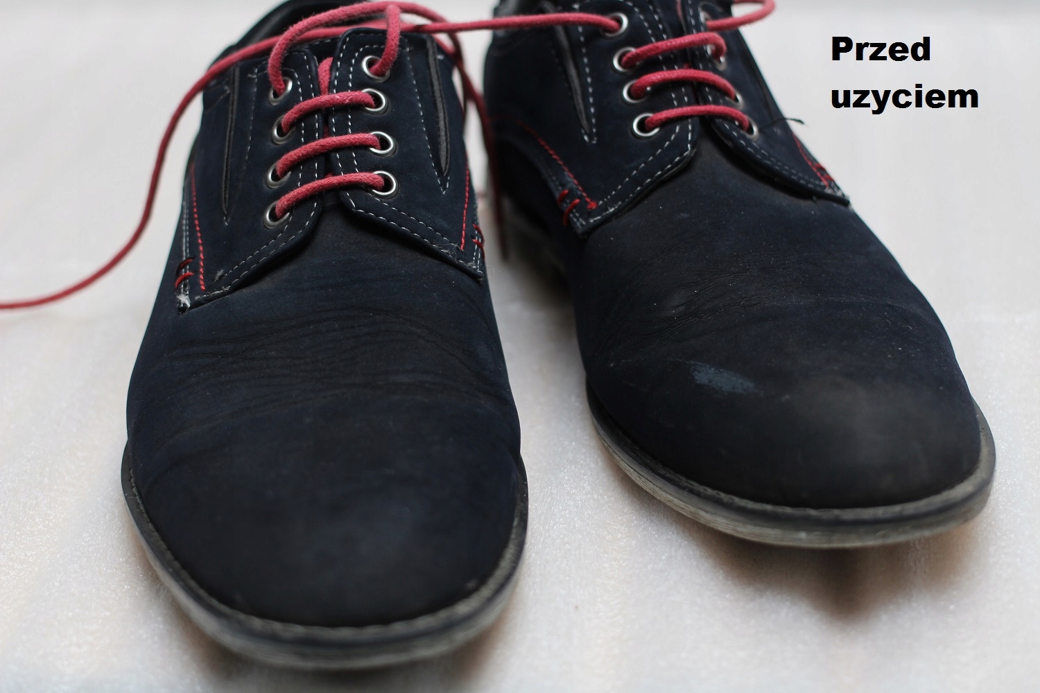 Ми рекомендуємо перевіряти роботу продуктів у невидимих місцях, оскільки виробники використовують різні матеріали (не завжди придатні) для виготовлення своїх виробів . Місцем, де можна перевірити роботу виробів, є бічні частини виробів, наприклад, бічні частини язика на взутті.