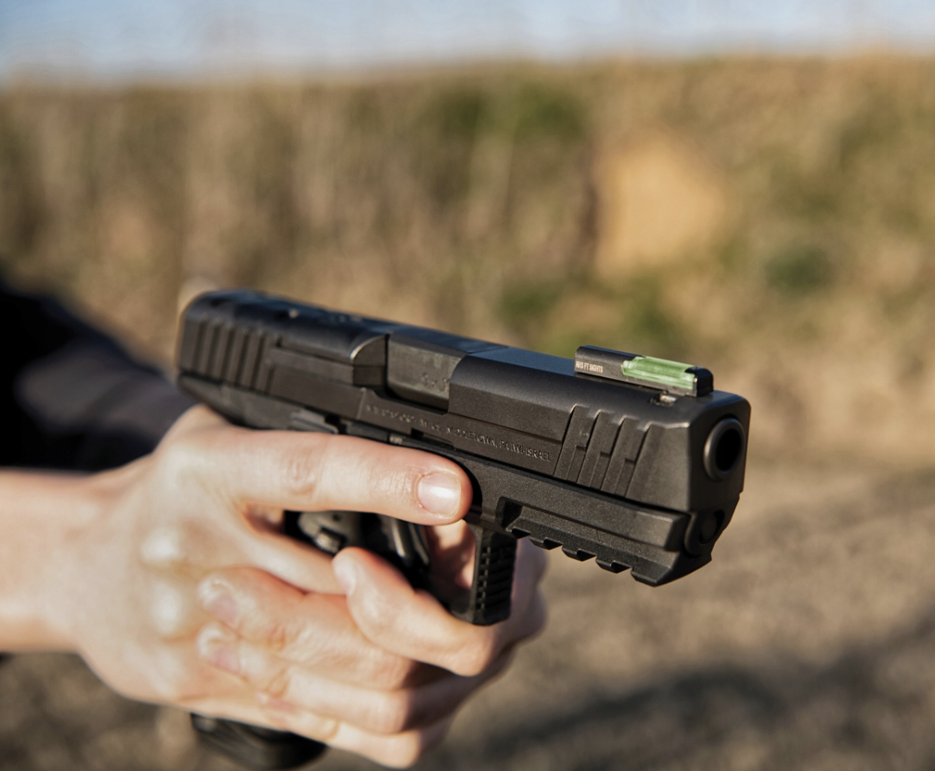 Ultra -large, без засувок, дизайн легко витягнути і дозволяє інстинктивно націлитись під тиском. Основне припущення про використання цього пристрою полягає в тому, щоб швидко відстежувати ціль і провести вогонь на близькій відстані.