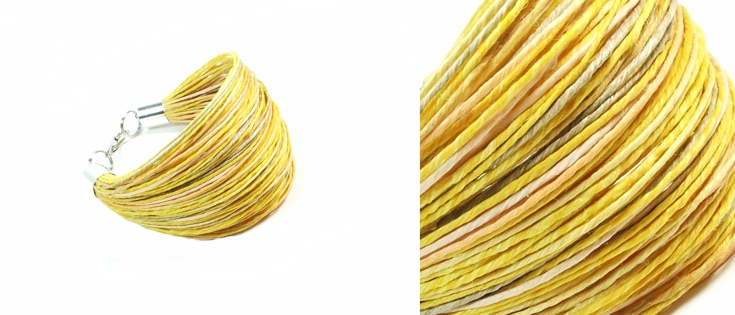 Браслети виготовлені вручну з барвистої натуральної лляної пряжі, добре просоченої.