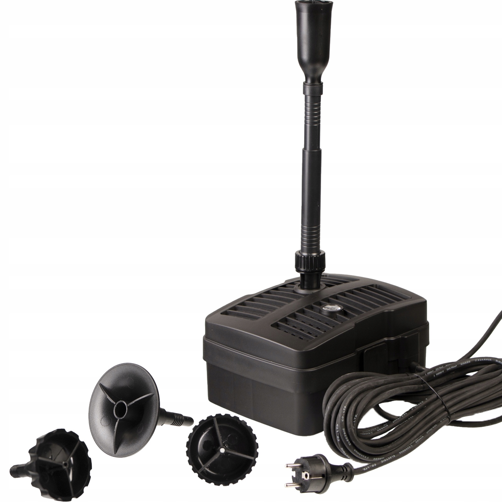 "Все в одному" пристрої. Фонтан, ультрафіолетовий стерилізатор, хімічний, біологічний та механічний фільтр води та фонтан, і ви все ще можете, але вам не потрібно, наприклад, невеликий водоспад, що використовує цей пристрій одночасно. Набір включає, серед іншого, різні наконечники фонтанів - для різних водних ефектів, трійника з регулюванням потоку до водоспаду, фурнітурою для шлангів тощо. Серце пристрою - надійний водяний насос Sunsun з 1000 л/год.