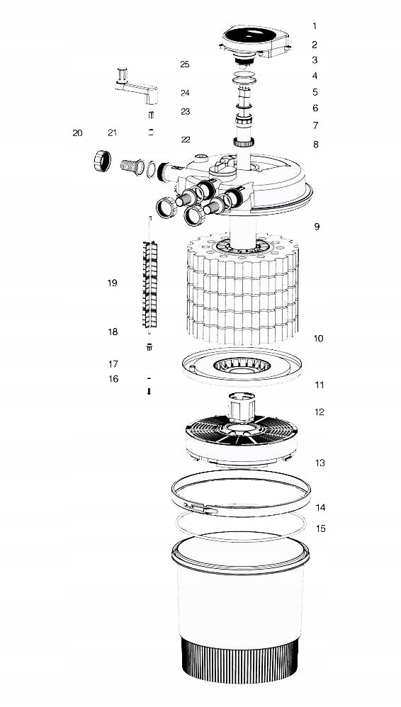 5 . Фільтр має реверсексек - самоочищаючі фільтрувальні носії, змінюючи напрямок потоку через зворотну вихід. Вам не потрібно відкривати фільтр, щоб очистити його вставки для губки. Періодично, залежно від потреб, відкрийте фільтр і очистіть відро від великих фракцій забруднюючих речовин у відрі. Це слід зробити, зокрема при повороті кривошипа досить проблематично. 4 Найчастіше з хорошим ефектом оксигенації ми подаємо наверх, з якого він тече у вигляді каскаду. Така система забезпечує нам велику гнучкість у встановленні пристрою.