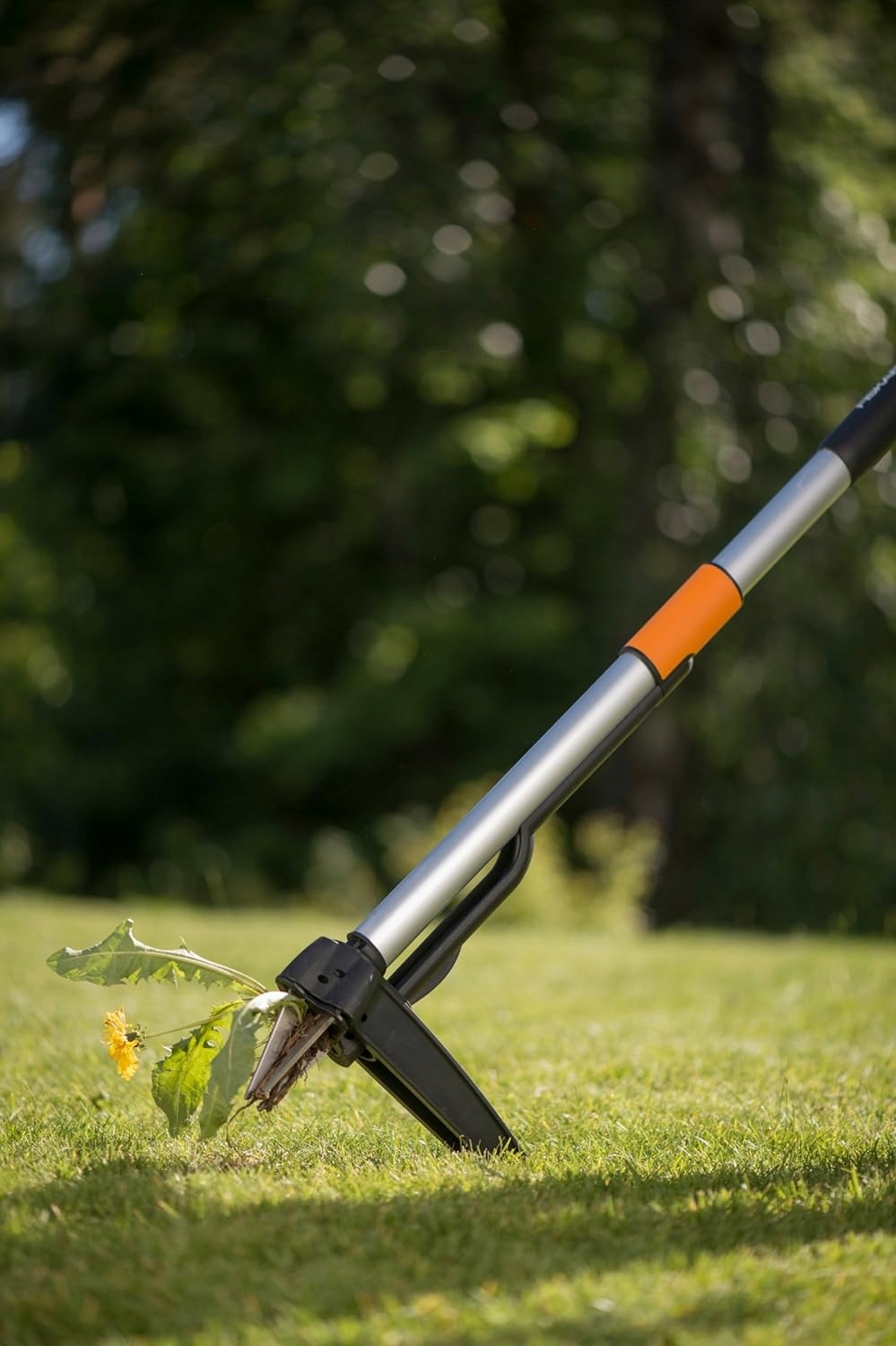 Вміст: 1 телескопічний прибиральник бур’янів Fiskars SmartFit, довжина: 1–1,19 м, діаметр: 3 см, вага: 1,25 кг, матеріал: сталь/пластик, колір: чорний/помаранчевий, 1020125. Покращена конструкція педалі забезпечує на 30% більше еластичність, висока міцність чотирьох рукояток із нержавіючої сталі та пластикового валу, легко миється водою, фінський дизайн. Зручне робоче положення без згинання м'язів рук і спини розвантажується завдяки D-подібній телескопічній ручці для всіх розмірів рук. Висмикування бур'янів з 4 сторін за допомогою рукояток, які досягають глибини до 10 см у землю. Висмикування рослини та її коріння завдяки запатентованому механізму захвату. Легке звільнення бур'янів із рукояток захоплення шляхом натискання на ручку. Телескопічний прибирач бур'янів для тривалого, екологічно чистого видалення бур'янів діаметром до 4 см. Ідеально підходить для кульбаби, осоту, кропиви та інших коренеплодів на легких ґрунтах, клумбах або на газоні.