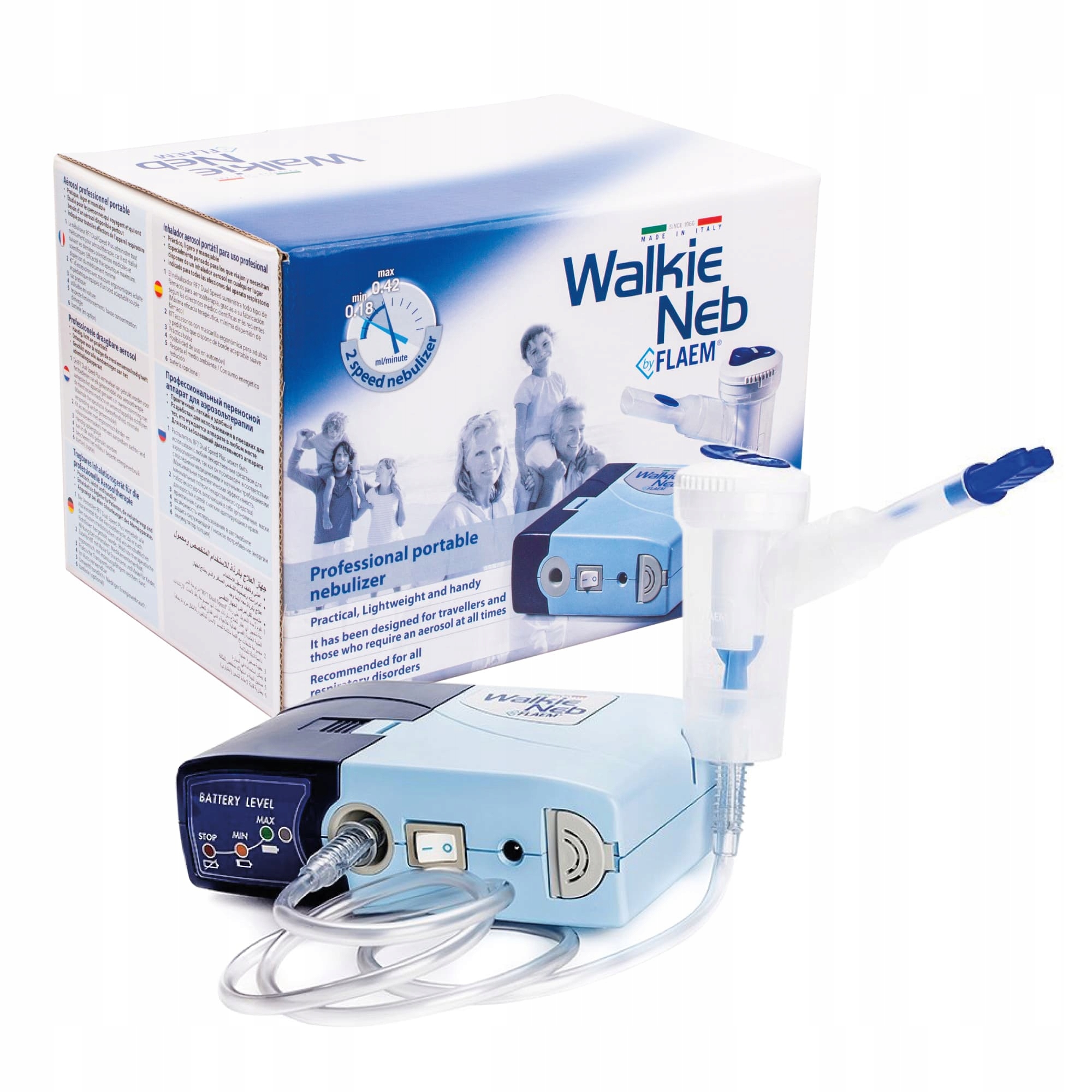 інгалятор Flaem Walkie Neb. Дуже тиха робота та низьке споживання енергії. Завдяки своїй інноваційній технології Walkeneb досягла великої потужності, компактних розмірів та легкість - завдяки якому він є ідеальним будинком та портативним інгалятором. Спеціально розроблений для мандрівників або людей, які хочуть мати пристрій в будь -який час. Він може живитися за мережею або з 12В розетки в автомобілях. Спеціальний клапан небулайзера дозволяє вводити аерозоль лише на фазі натхнення, завдяки якому ми заощаджуємо половину препарату. Набір включає дві м'які сенсорні маски. Приємно на дотик і легко відповідні маски роблять лікування ще більш комфортним.