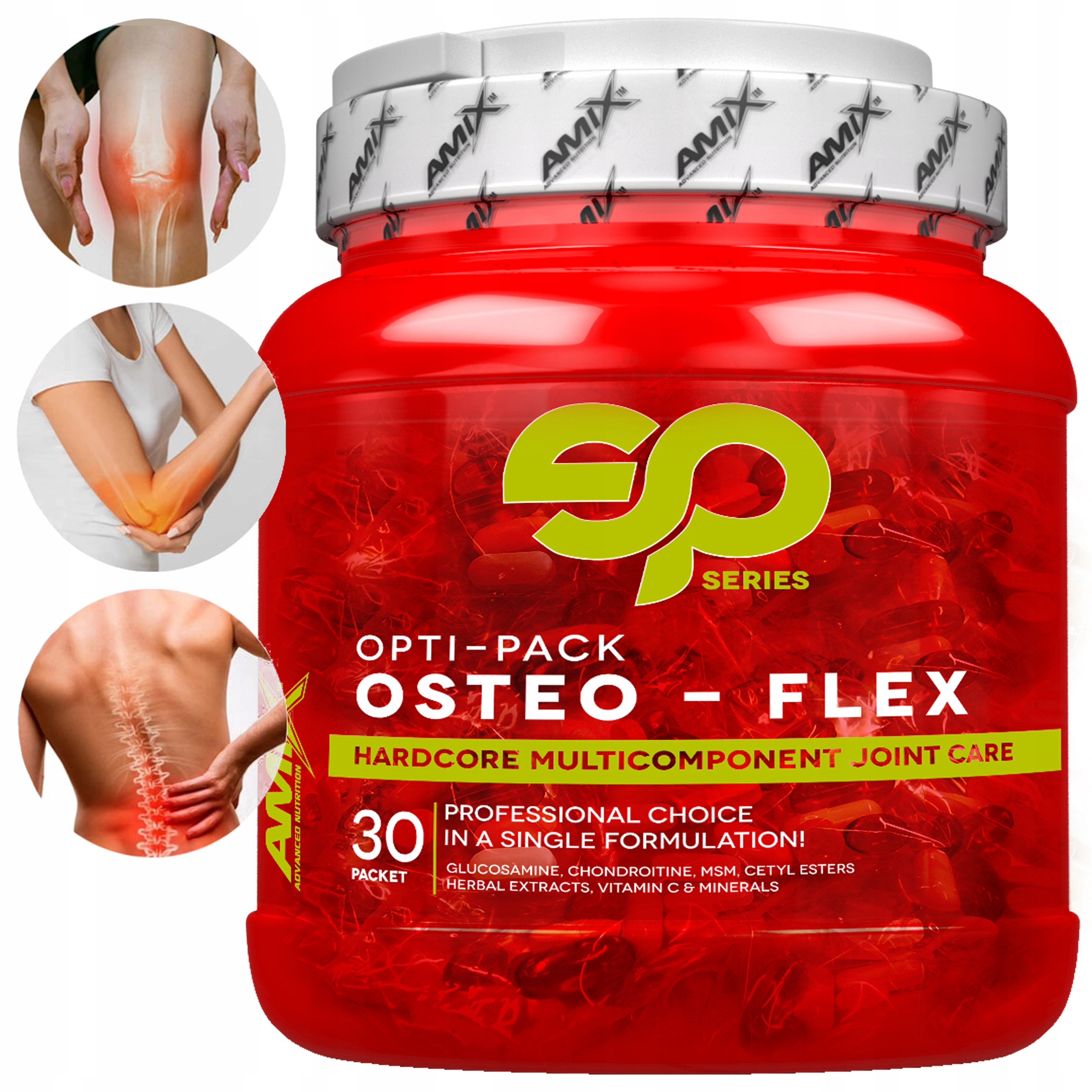 Amix Opti-Pack Osteo-Flex - дієтична добавка, створена спеціально для людей, зацікавлених у поліпшенні стану своїх суглобів і кісток. Завдяки поєднанню аж 20 активних інгредієнтів із доведеною протизапальною, знеболюючою та природною регенеруючою дією – він піклується про здоров’я ваших суглобів на багатьох рівнях. Це знижує ризик травм, зміцнює суглобові структури та стимулює відповідні тканини до регенерації. Унікальна формула містить високі концентрації активних інгредієнтів, що забезпечує максимальний ефект.