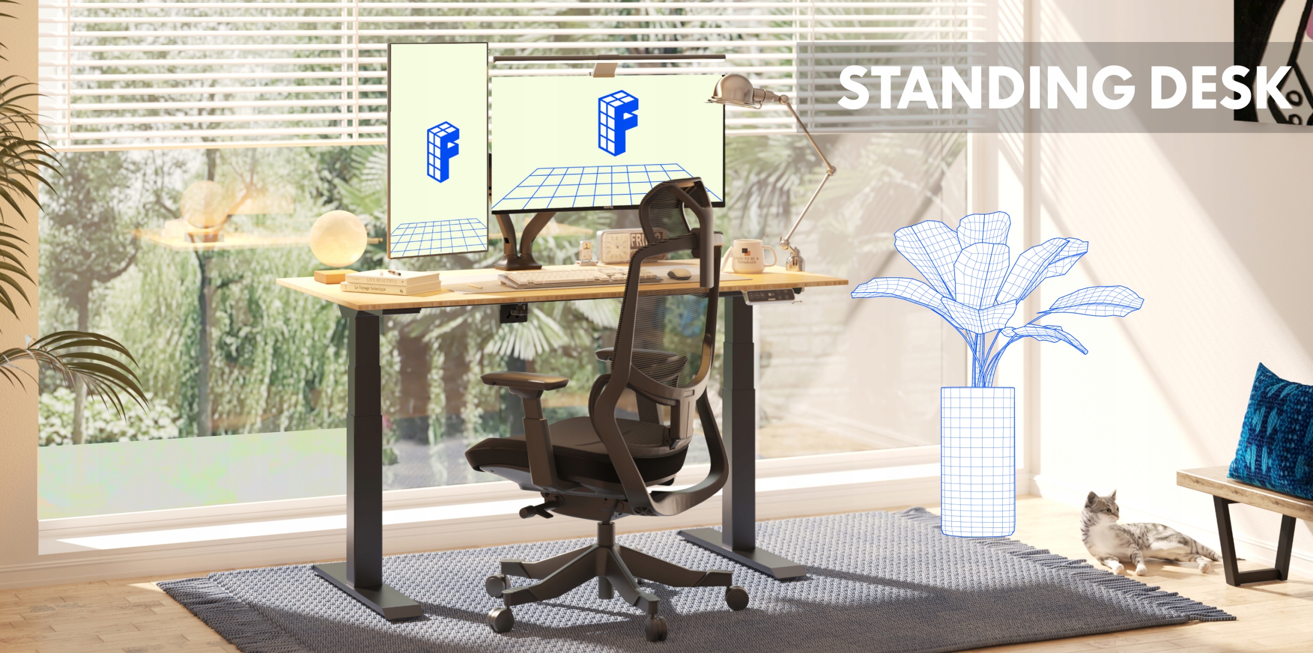 Розроблена для гнучкості, кадр відповідає стаціонарним комп'ютерам між 120–200 см глибиною 60-80 см , завдяки якій він підходить для всього, з компактних робочих творів. 4 Це забезпечує незмінно плавно та безпечний досвід користувачів на будь -якій висоті.