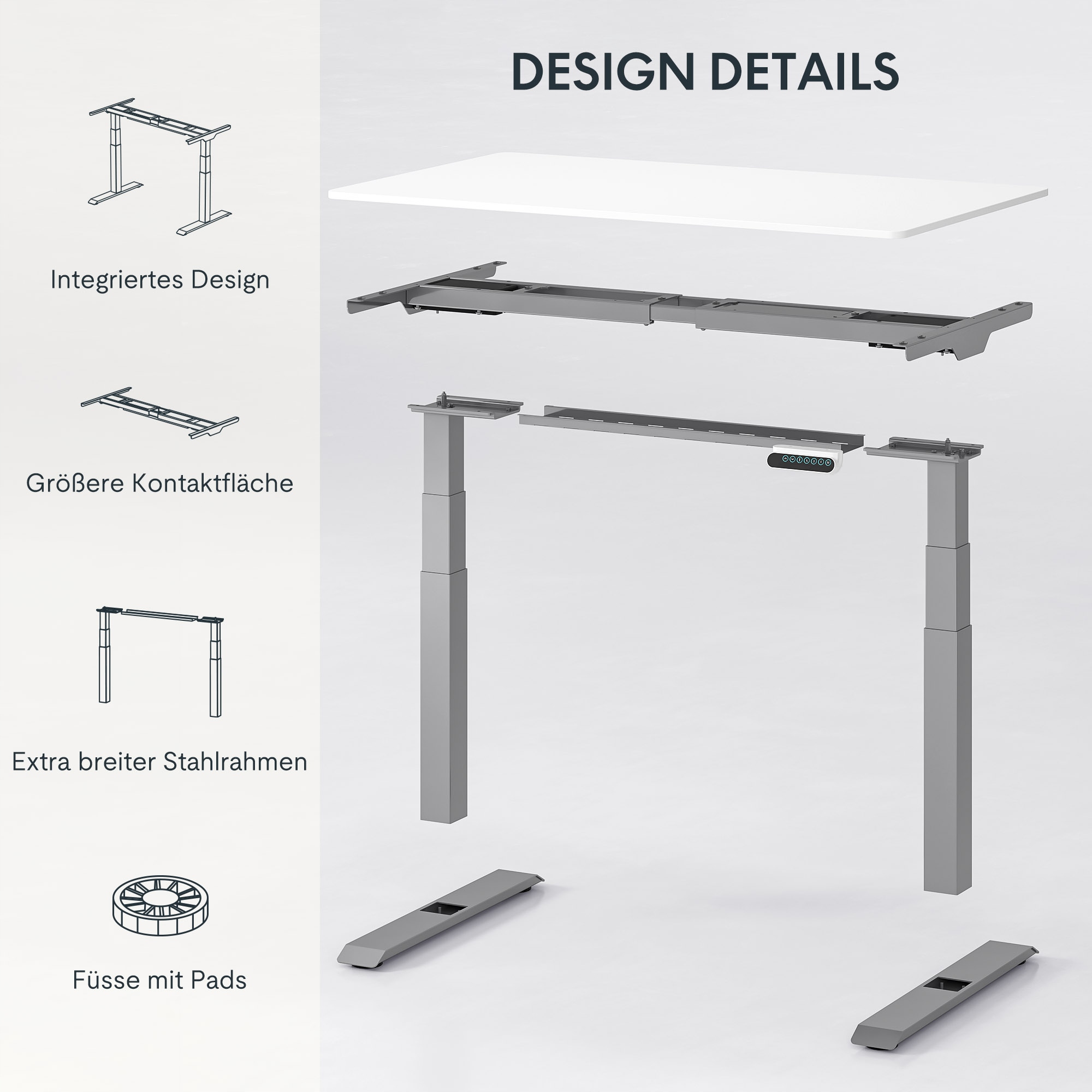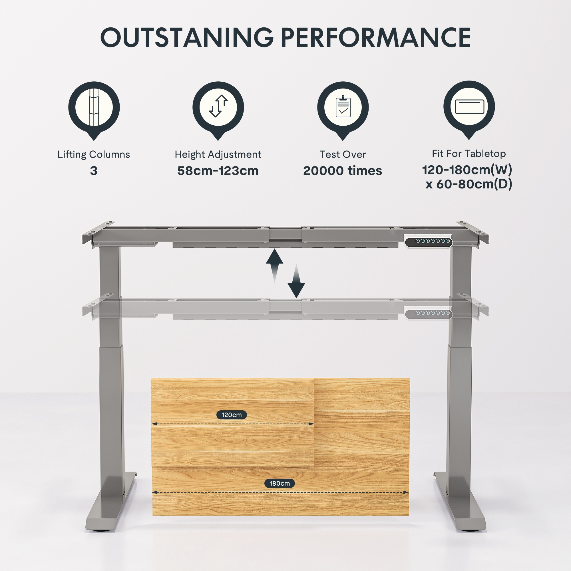 адаптується від 58 см до 123 см (без стільниці), що робить його універсальним для розміщення дітей, сидіння та повних позицій стоячи - ідеально для вирощування сімей або загальних робочих просторів. 4 Ширина від 120–180 см та глибини 60–80 см , що дає свободу в адаптації робочого простору до кожної компонування приміщення або робочого потоку.