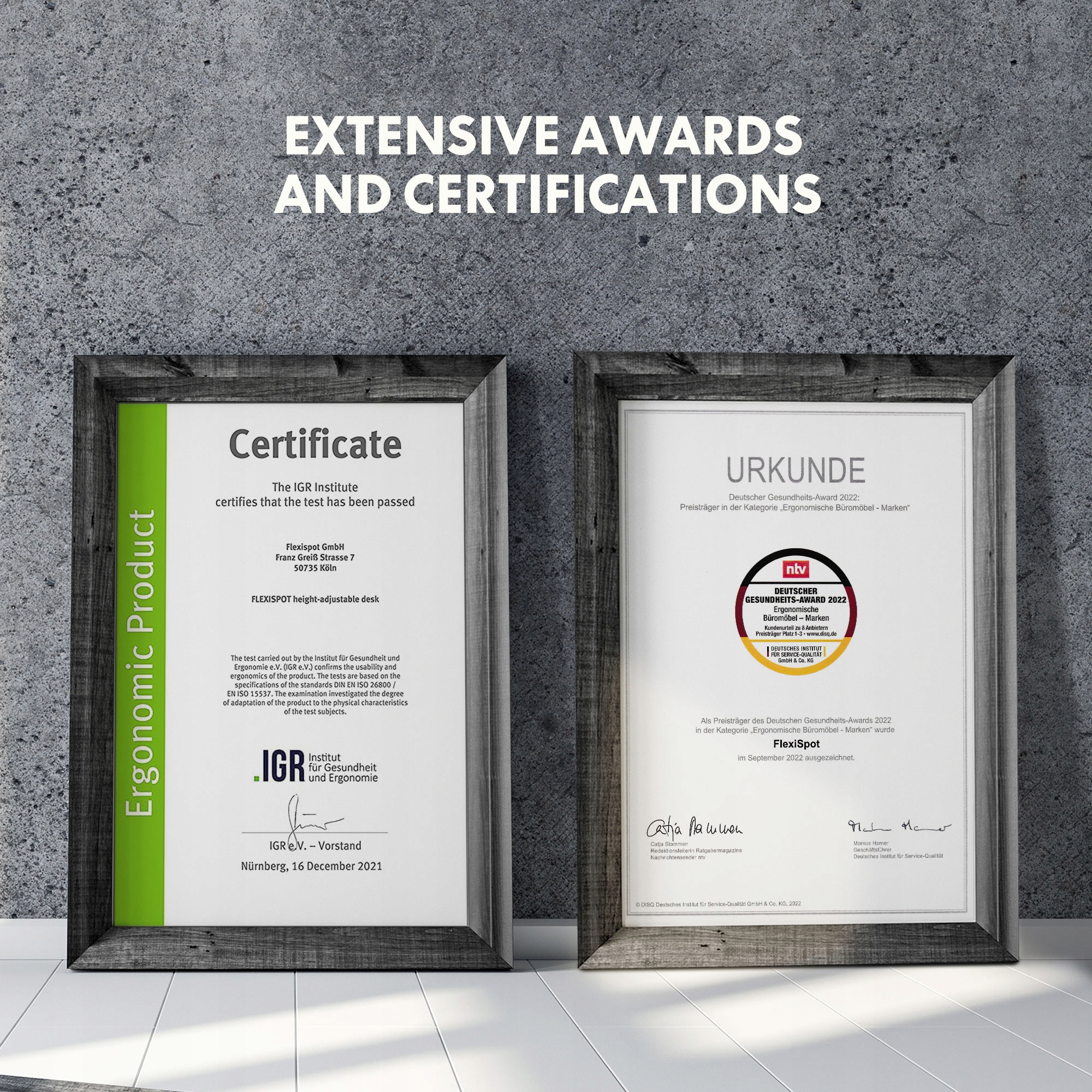 Перший у місці зберігання: наш стоячий стіл може тримати до 160 кг - набагато більше, ніж інші столи з регульованою висотою на ринку. Ми перевіряємо кожен індивідуально регульований стіл та двигуни на фабриці, призначеному щонайменше на 20 000 циклів.
