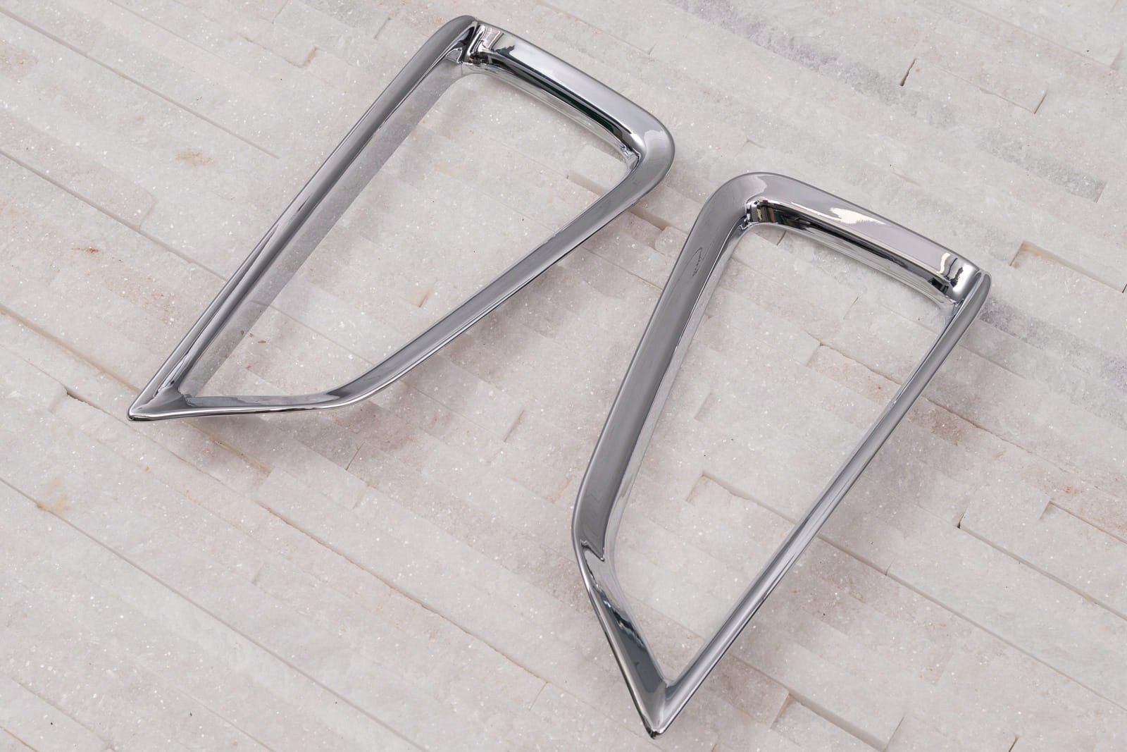 Виріб виготовлено з високоякісного хромованого ABS-пластику. У комплект входить набір з двох галогенних чохлів.