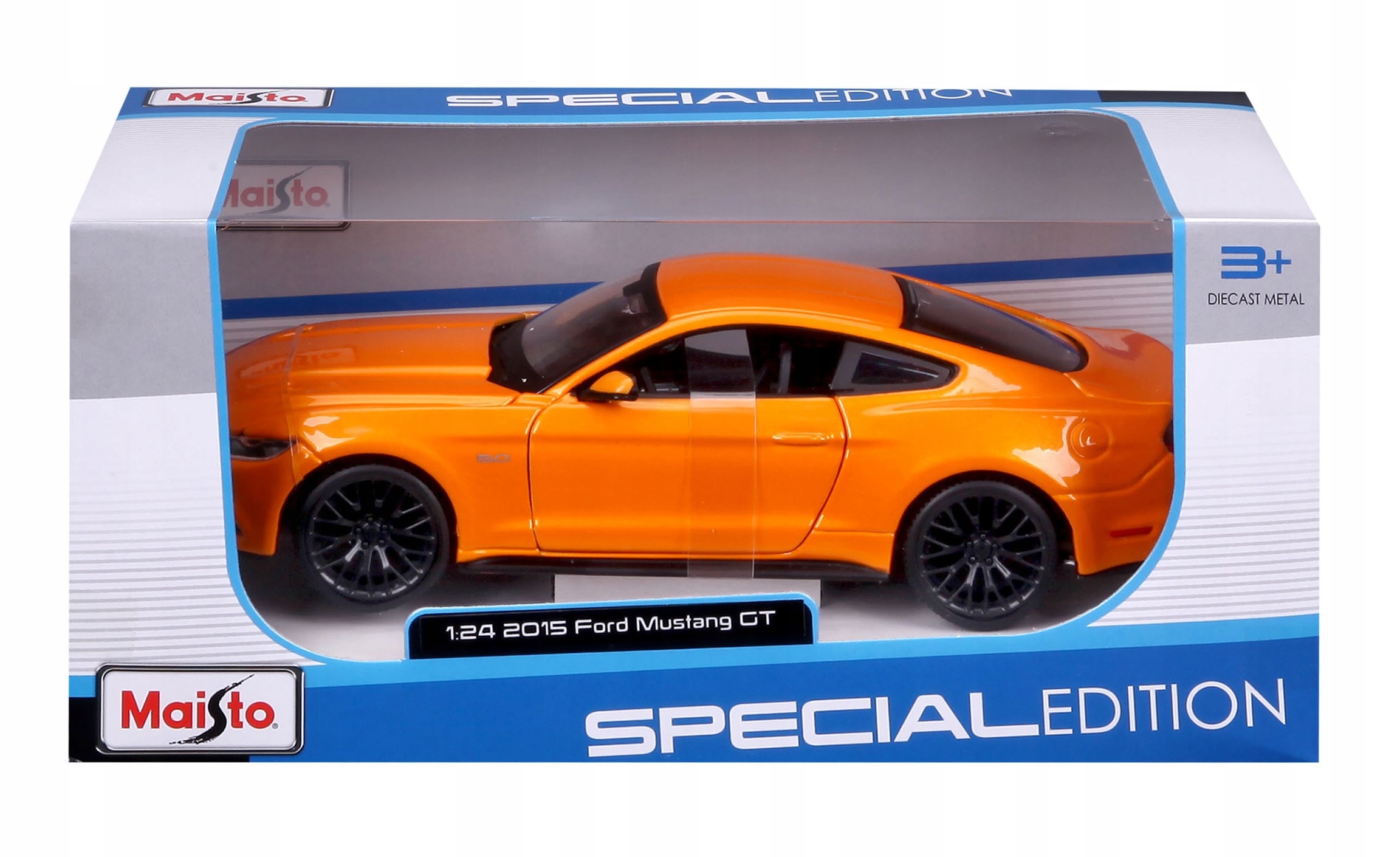 Металева модель колектора Ford Mustang GT 5.0 З 2015 року за шкалою 1/24, що виробляється добре відомою, цінною та авторитетною компанією Maisto. Помаранчевий