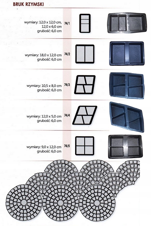 Forma do produkcji kostki BRUK RZYMSKI 6cm 18x12cm