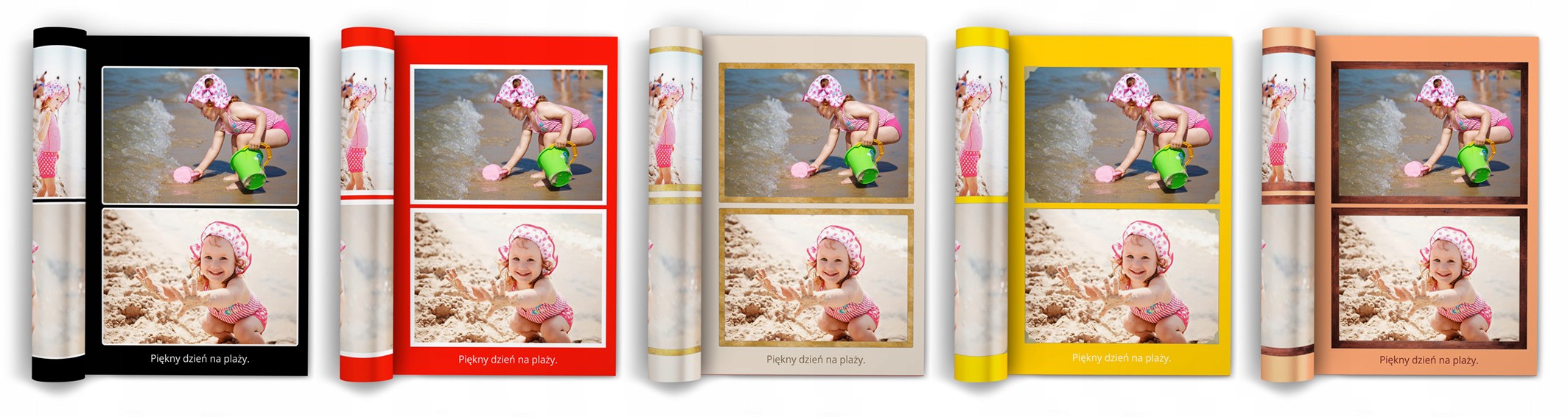 Коли ви впорядкуєте фотографії, введете тексти та виберете макет (дизайн) книги, ви можете почати експериментувати з кольорами. Є багато перевірених комбінацій кольорів, фоторамок і шрифтів на вибір.
