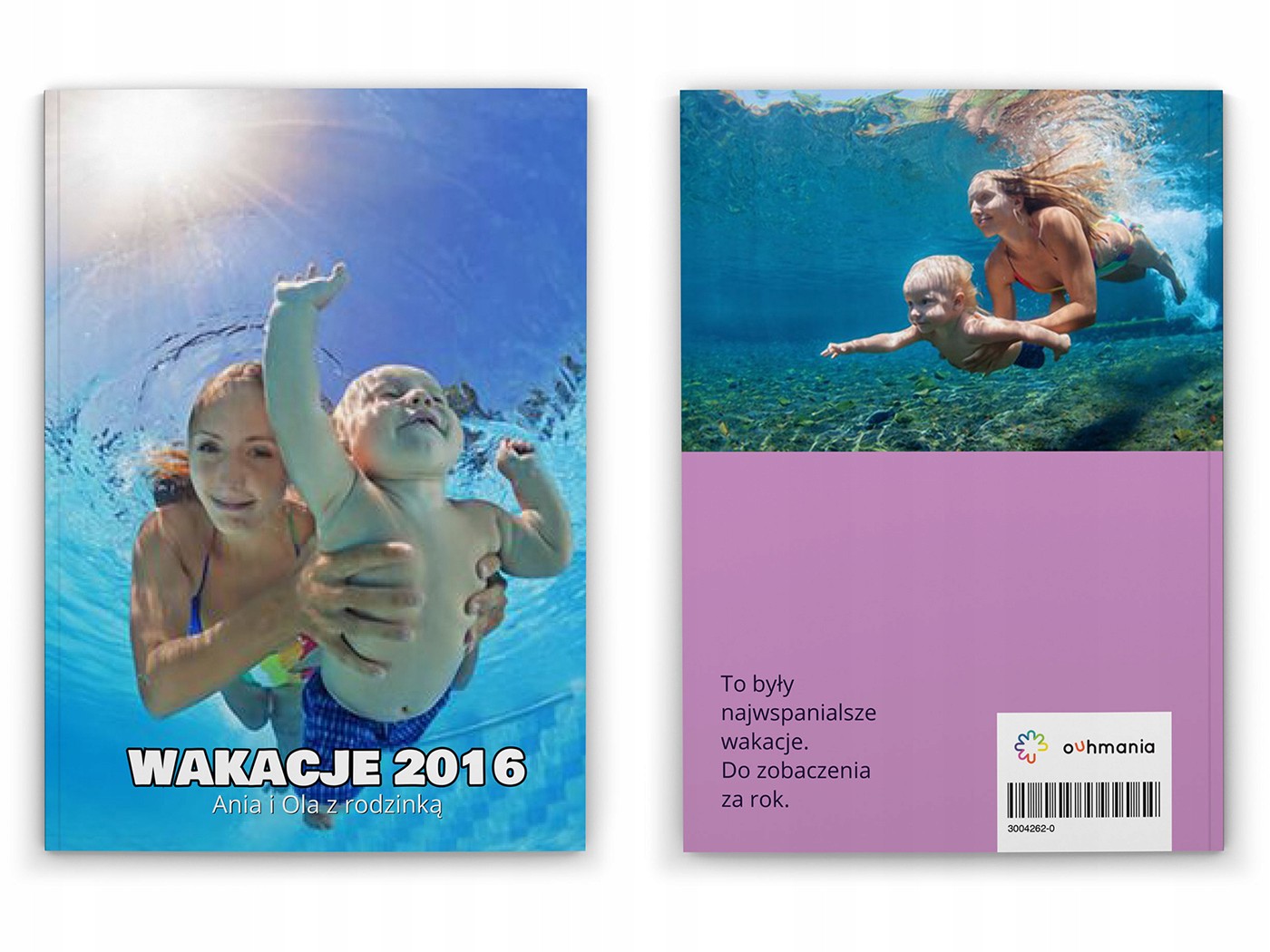 Якщо хочете, ви можете розмістити одну велику фотографію, яка закриває передню обкладинку, задню обкладинку та корінець. Ви робите це, розміщуючи досить широку фотографію на передній обкладинці. Як ви бачите на фото, на задній обкладинці також є штрих-код і логотип ouhmanii. Нам потрібен код, щоб швидко та правильно надсилати кожну книгу на вказану адресу.