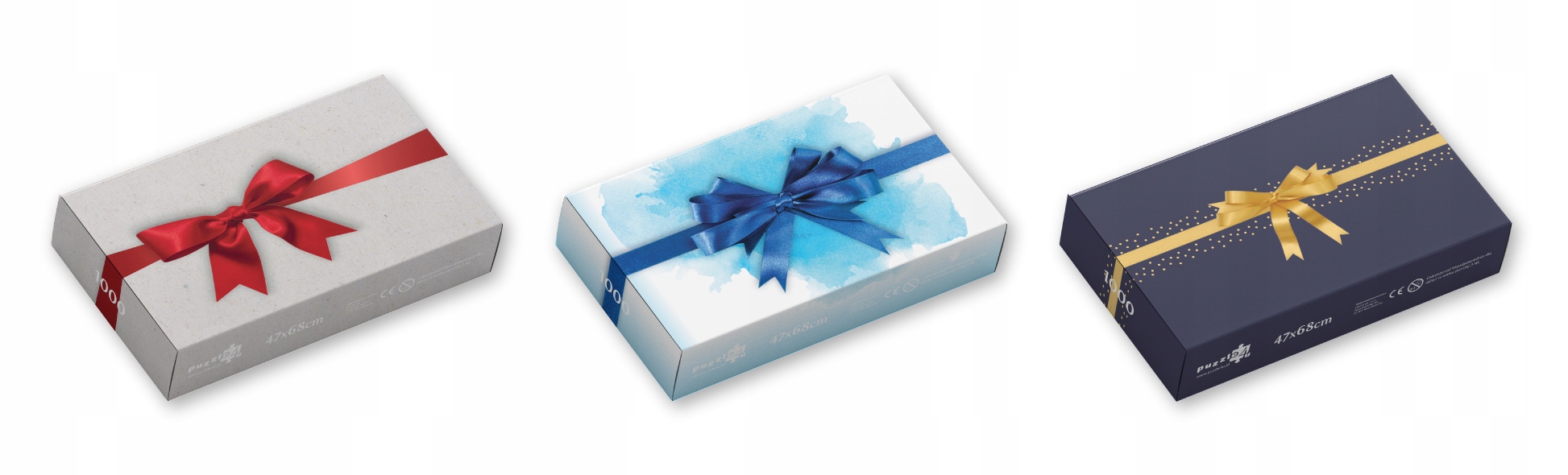 - Пазл у розібраному вигляді поміщений у пакет та упакований у коробку з обраним малюнком