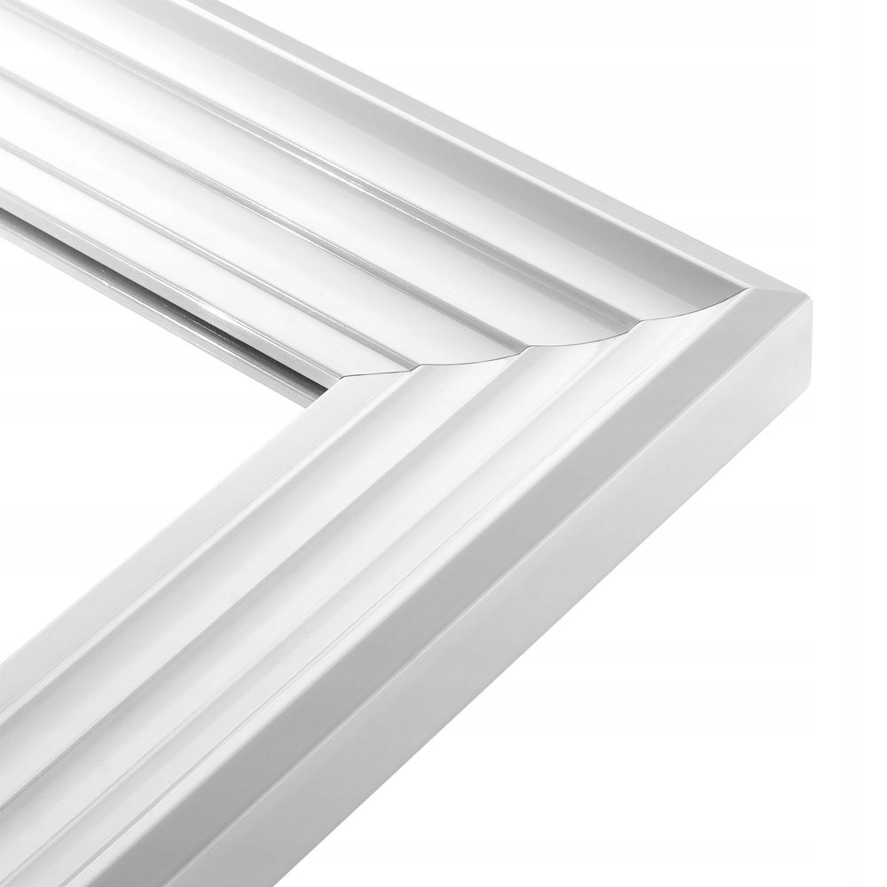 Фоторамка на стіні. Широка, струнка рамка біла (глянцева). Ступінчастий профіль, цікавий ефект відбиття світла під різними кутами. Каркас виготовлений з високоякісних термопластичних смуг, покритих міцним декором. До складу входить панель з оргскла (тобто акрилове скло) і плита HDF товщиною 4 мм із заводськими монтажними кронштейнами для горизонтального та вертикального підвішування. Все утримується на висувних пластинах, що дозволяє легко обмінюватися фотографіями, графіками чи плакатами.