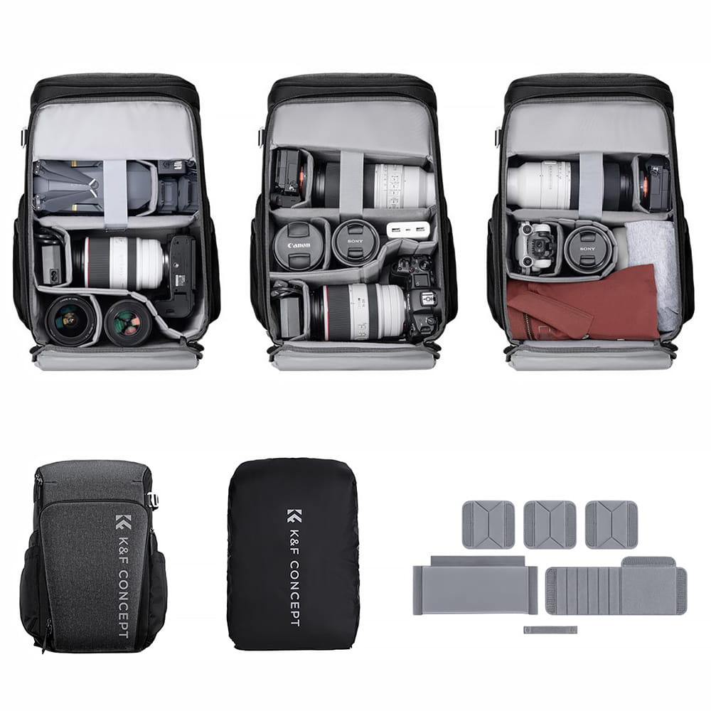 Удосконалений і ретельно розроблений фотографічний рюкзак K&F Concept із серії Alpha ємністю 25 л. Призначений для перевезення камери з декількома об'єктивами, дрона з контролером або іншого фото-відео обладнання. Інтелектуальна система внутрішнього розташування з швидким доступом збоку та повним доступом ззаду робить його корисним аксесуаром і забезпечує комфортну роботу.