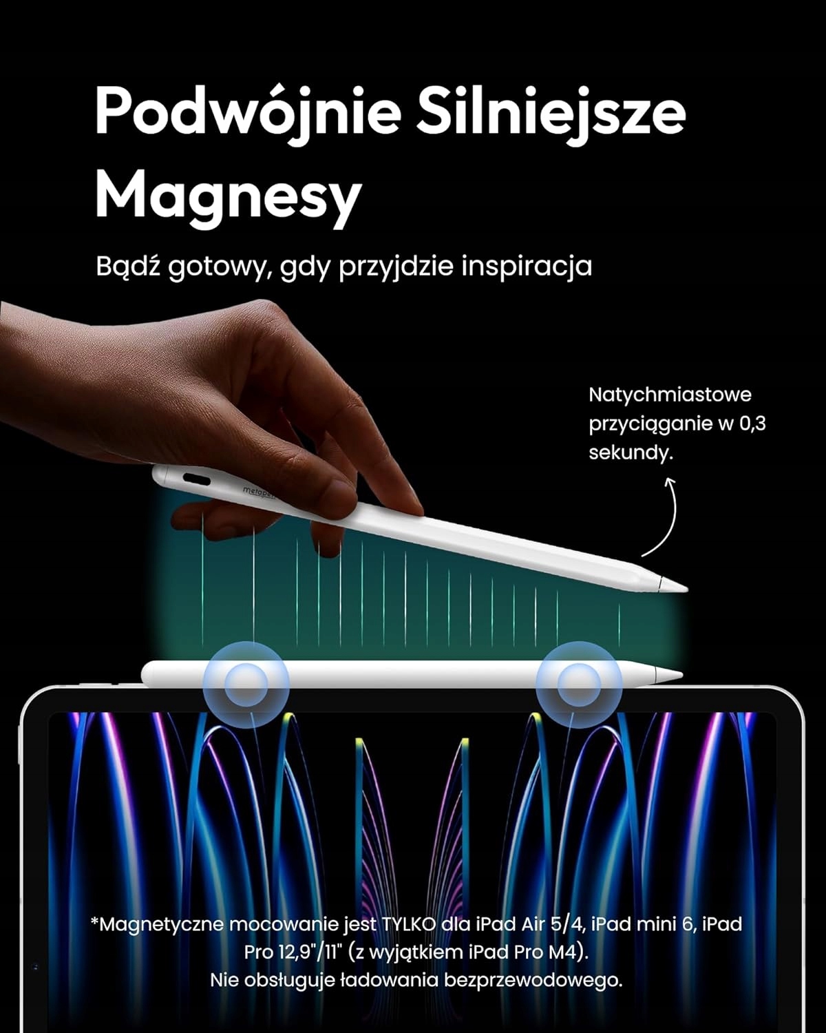 рукавички більше не потрібні, просто покладіть руки на екран під час написання чи малювання. Завдяки двом побудованим магнітам, метапен A8 стилус до Apple Pencil може бути прикріплений збоку iPad Pro 11 "(1/2/3 Gen), iPad Pro 12.9" (3/4/5 Gen), iPad Air (4/5 Gen), iPad Mini 6, кінець прокатки та програш.