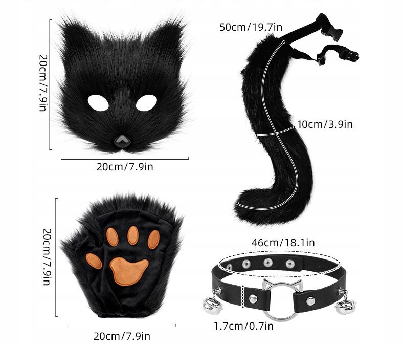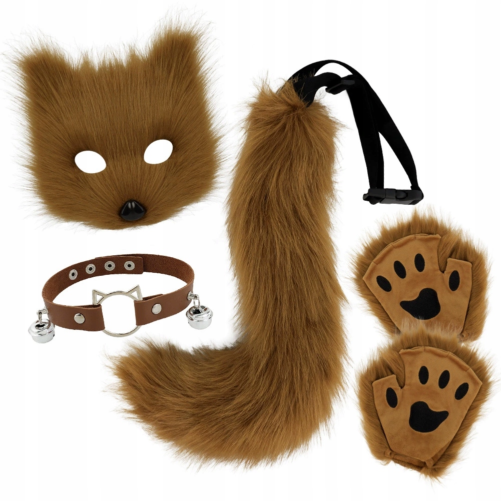 1 x хутряний хвіст, 1 x маска для обличчя, 1 x рукавички, 1x намисто.