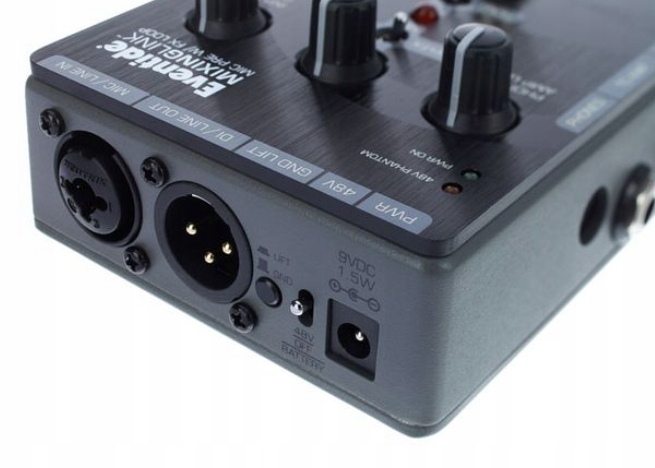 Блок живлення здійснюється за допомогою батареї живлення 9 В постійного струму) або 9 В, що робить його ідеальним рішенням у мобільних ситуаціях. вага : 0,43 кг . Завдяки невеликому розміру, змішувальне посилання легко переносити і ідеально підходить для мобільних налаштувань, таких як виступи в прямому ефірі, зразки або запис на ходу.