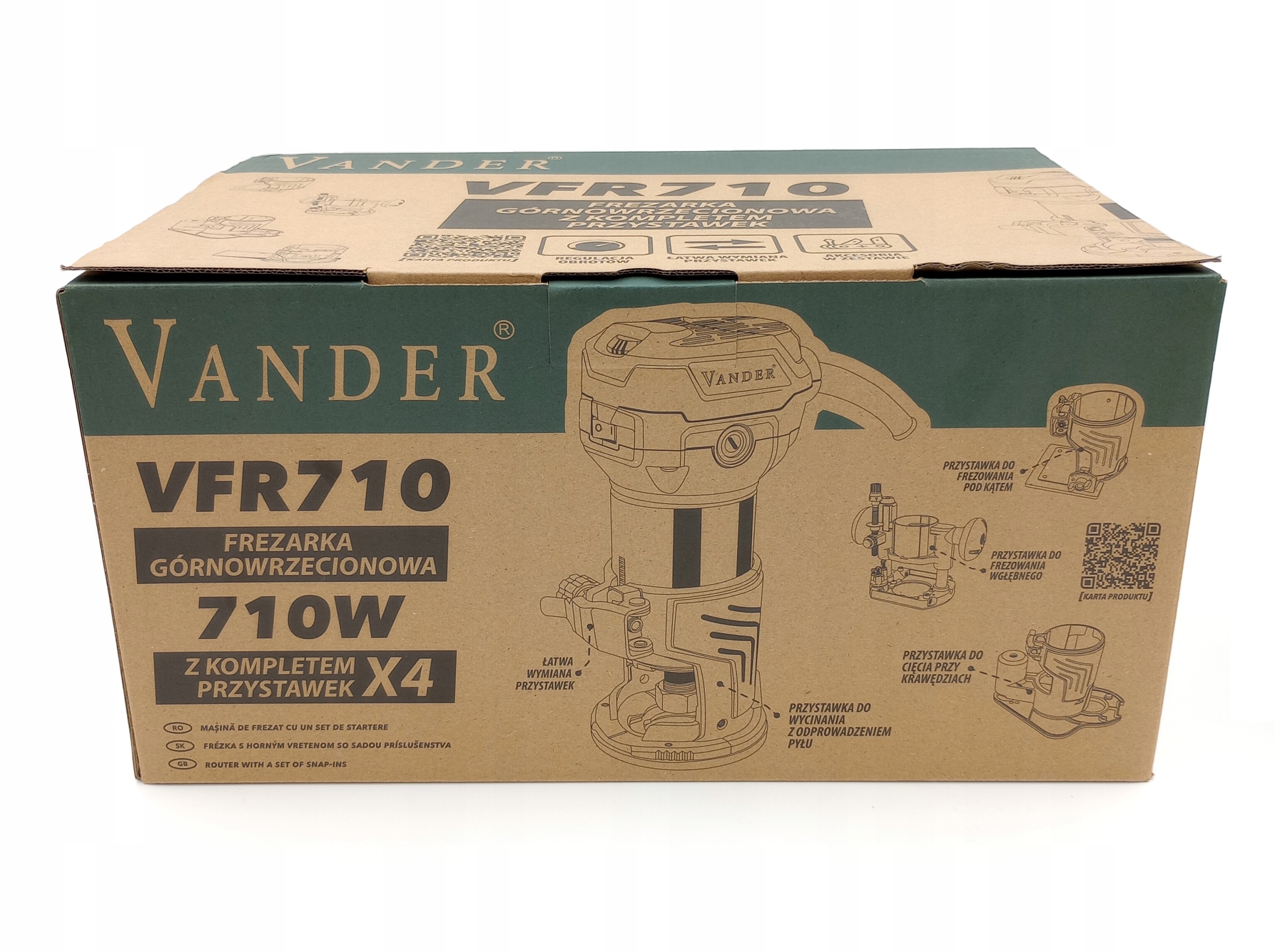 Фрезер VFR710 польського бренду Vander – це зручний і компактний пристрій, призначений для фрезерування, обробки та профілювання кромок у дерево, матеріали Деревні матеріали та пластмаси. Використовуючи кінцеві фрези відповідної форми, ви можете фрезерувати кромки, пази, профілі або вирізати пази. Завдяки змінним насадкам для різних застосувань, він дуже універсальний - ви можете виконувати набагато більше роботи з ним, ніж стандартний одноцільовий фрезерний верстат. Завдяки регулюванню швидкості фрезерний верстат можна адаптувати до конкретних вимог матеріалу та фрези, що використовується, , запобігаючи пошкодженню матеріалу та пристрою. Двотрубна напрямна - це додаткове регулювання, яке робить роботу щеточнішою. Фрезерний верстат дозволяє легко замінювати інструмент, тож ви можете легко адаптувати його до різних завдань обробки. Заміна ковпачків відбувається швидко, що значно економить час і підвищує ефективність. Виконує точні і точні розпили, що особливо важливо в проектах, що виконуються. Алюмінієвий корпус пристрою гарантує довговічність і надійність протягом багатьох років.