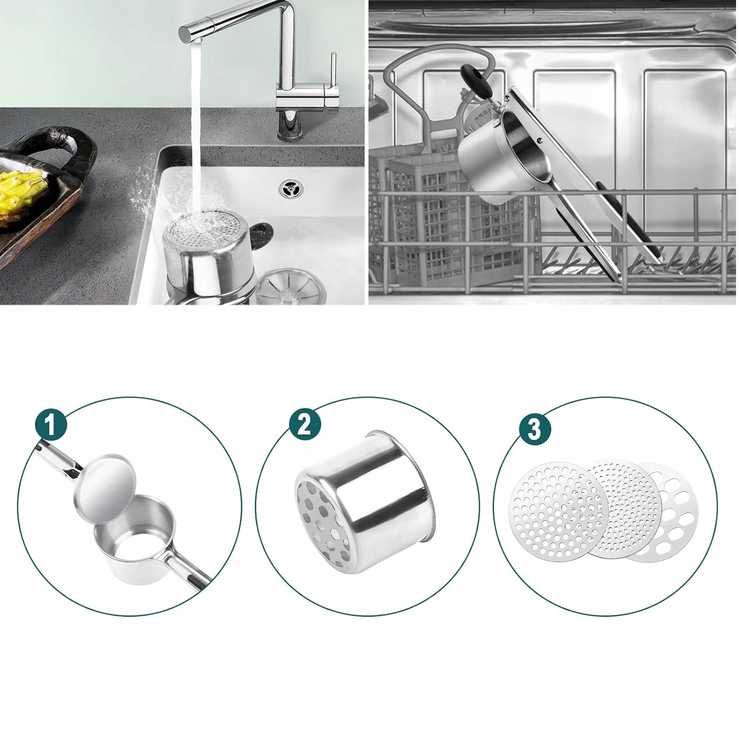 - Скринінг -лотки доступні з отворами з діаметром 2 мм, 4 мм і 12 мм, що полегшує приготування гладкої та пухнастої картопляної пюре, придатного для буряка, солодкої картоплі та різних овочів, солодкої картоплі та різних овочів. Енергія】