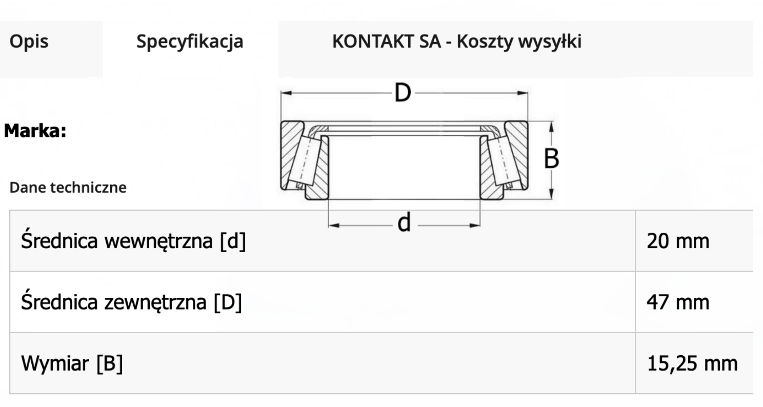 Конічний підшипник ефективно зменшує тертя і допомагає переносити електроенергію в таких додатках та галузях, таких як: сільське господарство, автомобільна, будівельна машина, важка та паперова промисловість, верстат, передачі тощо. Пропонований підшипник є новим, відповідно до рекомендацій виробника.
