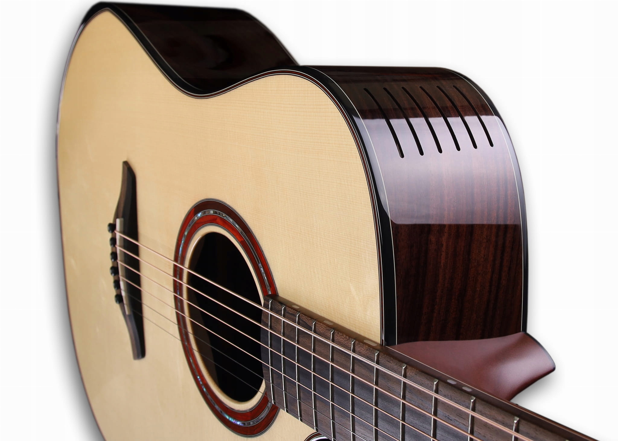 - Solid rear and sides - species Figured Indian Rosewood