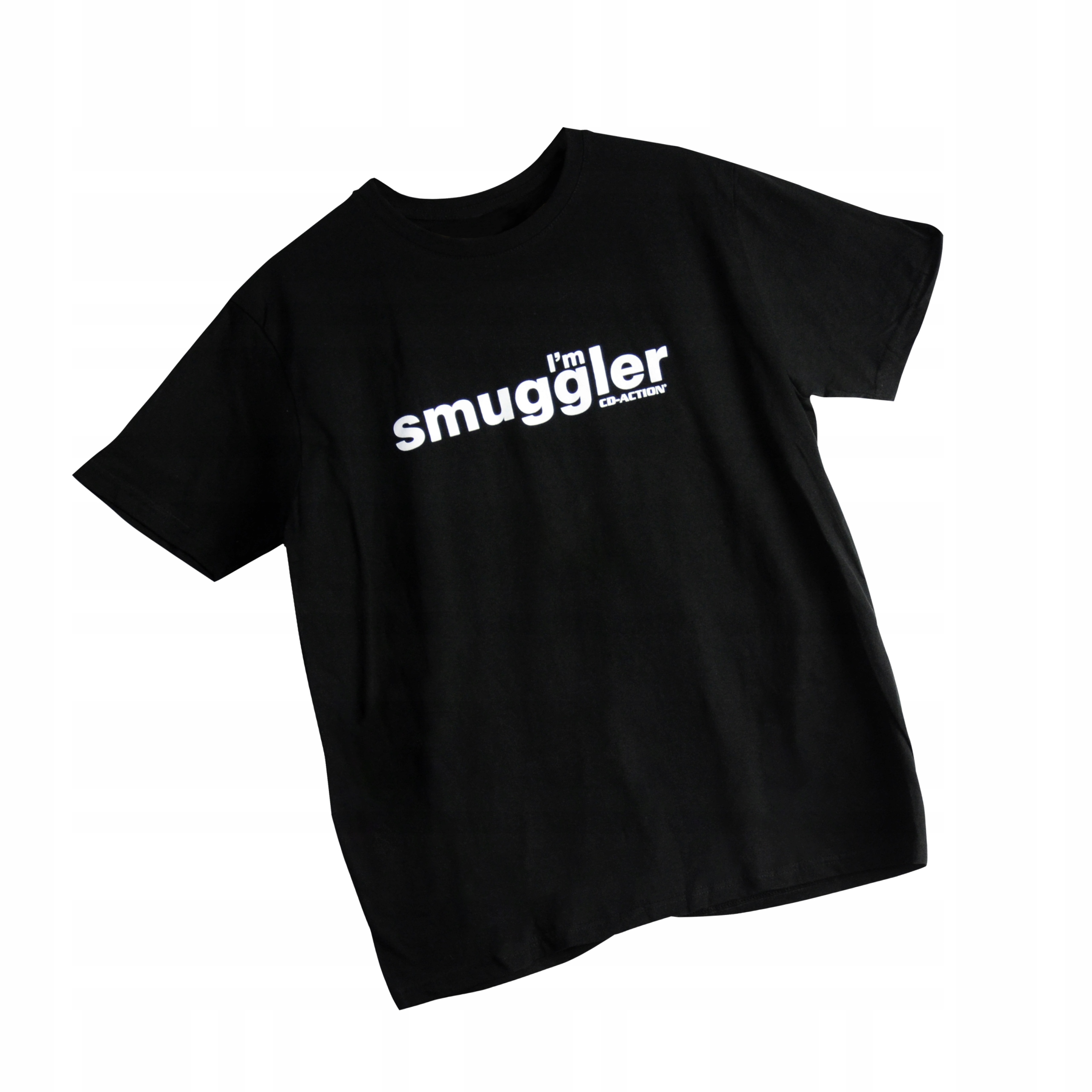 Футболка I'm Smuggler. Чорна чоловіча футболка з коротким рукавом. Білим написом "Я контрабандист". Без бічних швів. Круглий комір плоского плетіння. На горловині армуюча стрічка.