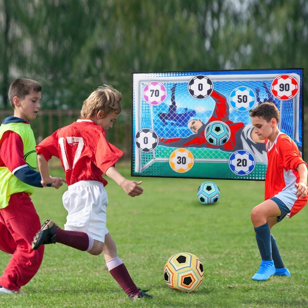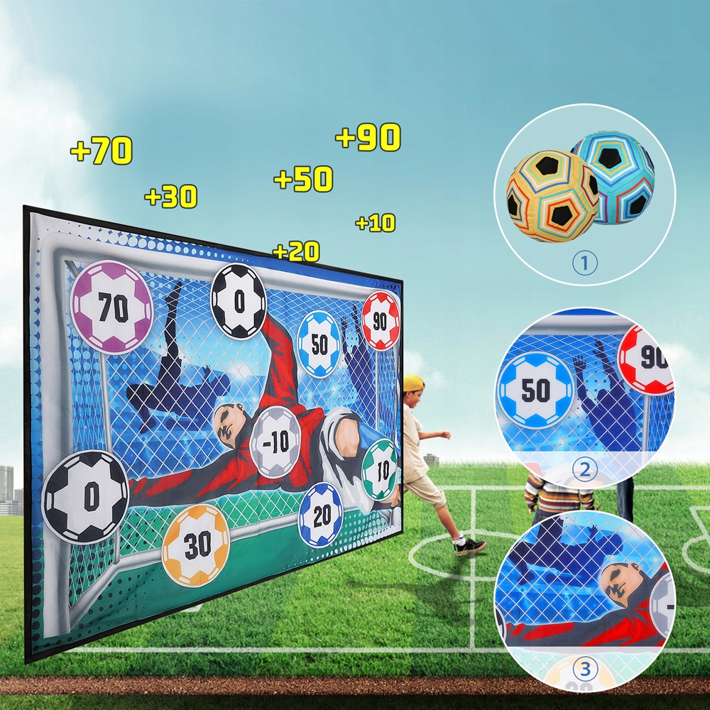 Футбольний ігровий комплект простий у встановленні. Просто повісьте гол на стіні і почніть грати у футбол. Переможець або загублений визначається на основі результату або ви та ваша дитина можете придумати ваші власні правила. Цей набір може практикувати у дітей рухові навички та координацію рук та інші навички координації.