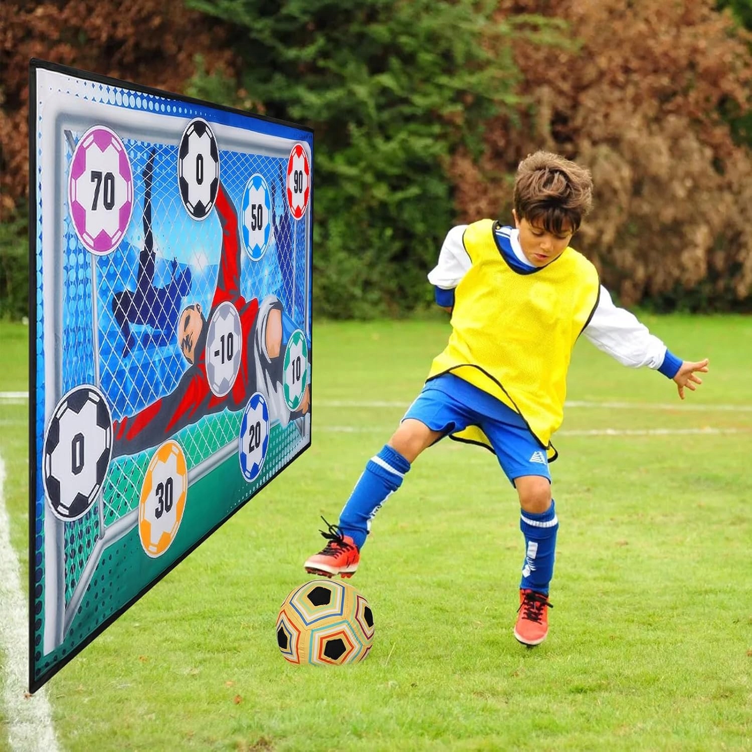 Ви шукаєте ідеальну іграшку до дня народження для свого маленького фанату футболу? Цей футбольний набір - саме те, що вам потрібно! Цей футбольний набір з яскравими кольорами та реалістичними конструкціями ідеально підходить для дітей, які люблять футбол і хочуть покращити свою гру як у приміщенні, так і зовні, а також заохочують дітей бути активними та розвивати рухові навички.