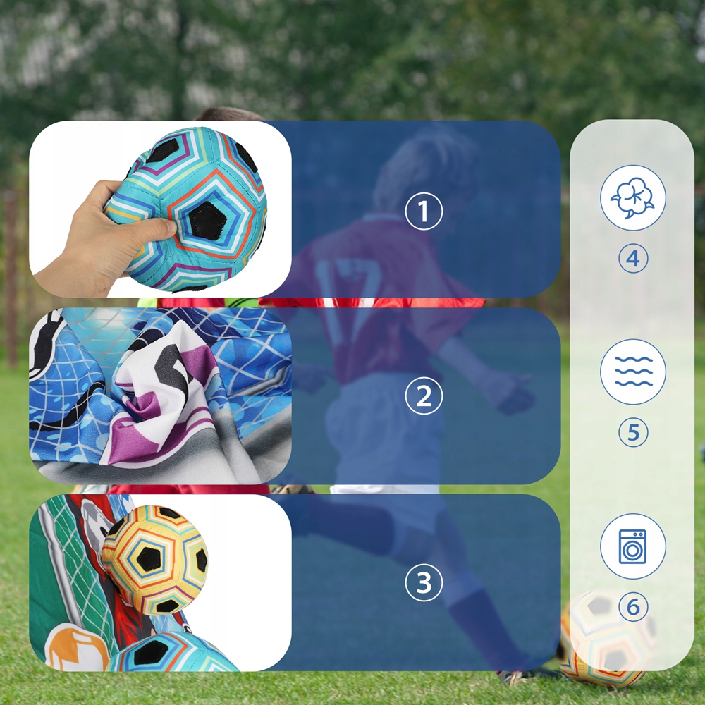 Цей футбольний набір з воротами виготовлений з м'якої та легкої тканини, є високоякісною, нетоксичною та дитячою. М'яч наповнений м’якою бавовною, тому вам не доведеться турбуватися про травму ніг дитини під час гри або пошкодження меблів у кімнаті. Тримайте дітей подалі від мобільних телефонів