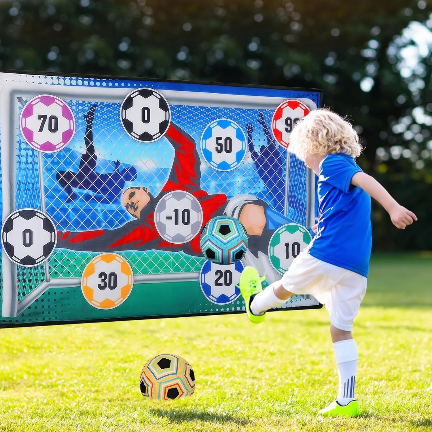 футбольний набір - ідеальний подарунок на день народження для малюків та ідеальний різдвяний подарунок для дітей віком від 3, 4, 6, 7 та 8 років. Футбольний набір підходить для використання всередині та зовні, для саду, на галявині, пляжі, футбольному полі. Це найкращий вибір для всіх видів заходів для дітей чи дітей, для ігор на свіжому повітрі та сімейних занять.