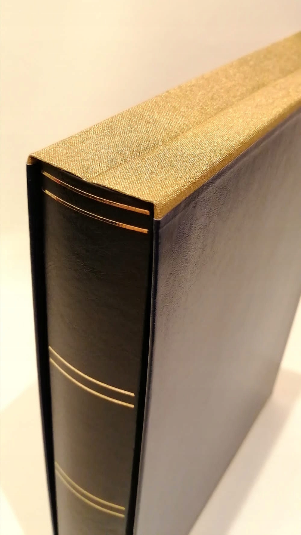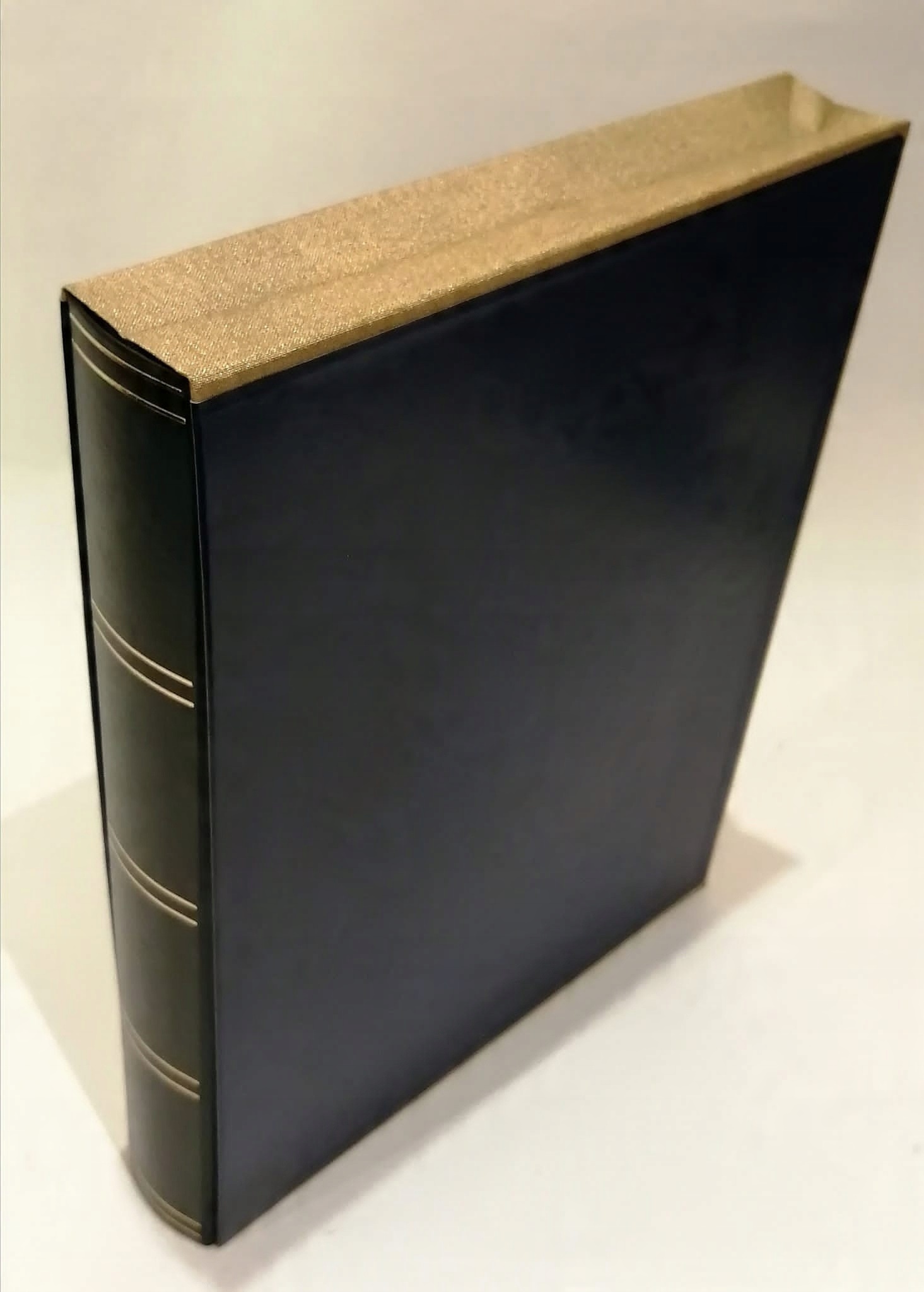 Конструкція - суцільний картон з наклеєною італійською позолоченою палітурною тканиною. Боковини покриті ПРЕМІУМ шпоном з текстурою шкіри.