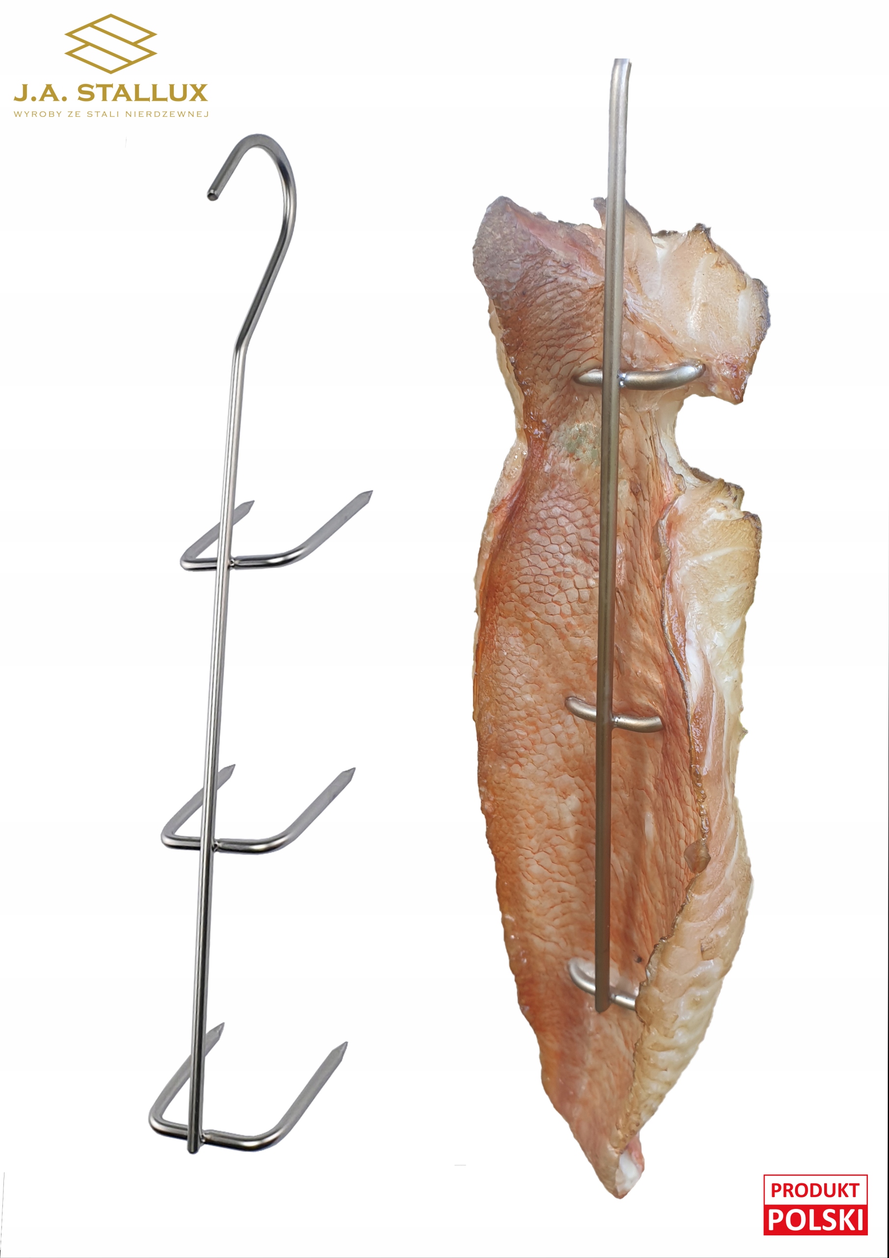 Пропоную гачки для копчення середнього та дрібного вузького філе скумбрії, вугра сига, доради, тріски та багатьох інших риб, т.к. а також філе курки, індички або кролика. Леза, розташовані ближче одна до одної, дозволять вам підвісити вузькі шматки філе.