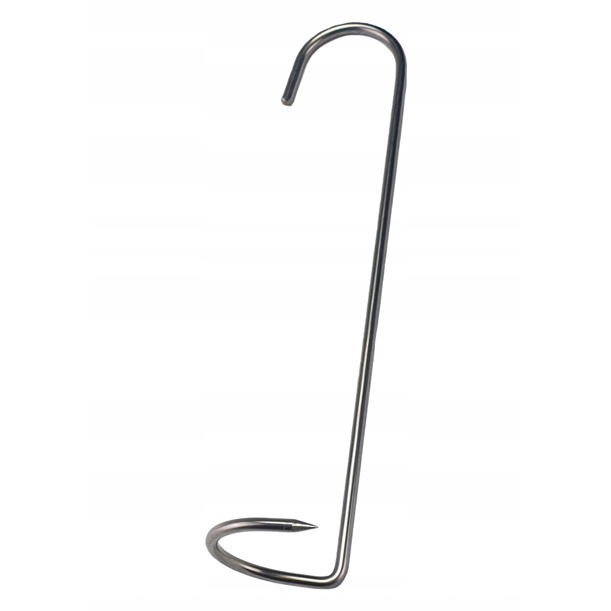 Гачок рекомендований для копчення великої риби без голови. Великий діаметр, до 50мм гострої частини, зігнутої в дугу, дозволяє підвішувати більшість риб вагою до до 3 кг. Лезо гачка закручується навколо хребта. Цей тип гачка дозволяє швидко зачепити рибу і гарантує, що риба не впаде під час копчення.