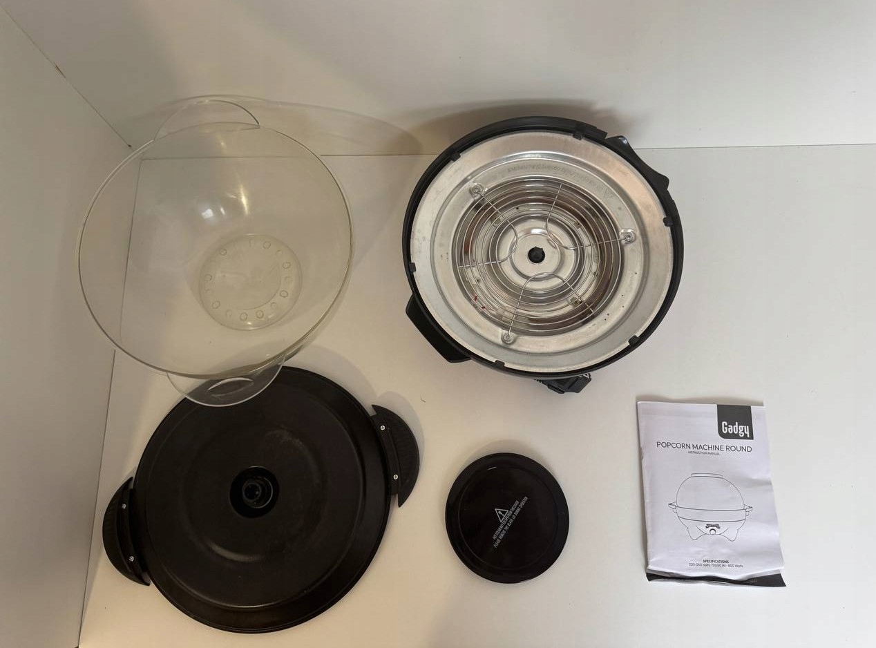 кукурудза нагрівається в миску з покриттям, що запобігає прилипанням і змішується над обертальною рукою. Змішування вмісту знижує ризик спалювання попкорну. Через запобігання покриття вам буде простіше мити пристрій.