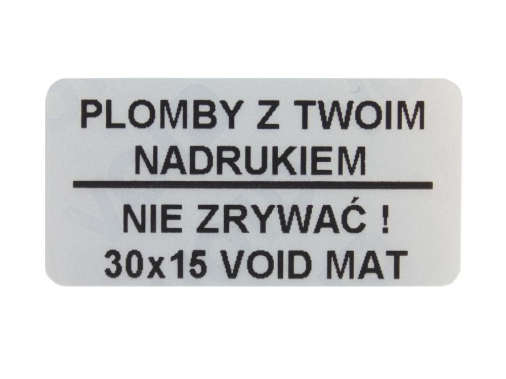 Ми пропонуємо 1000 штук гарантійних пломб розміром 30x15 мм, виготовлених з матової срібної фольги VOID.