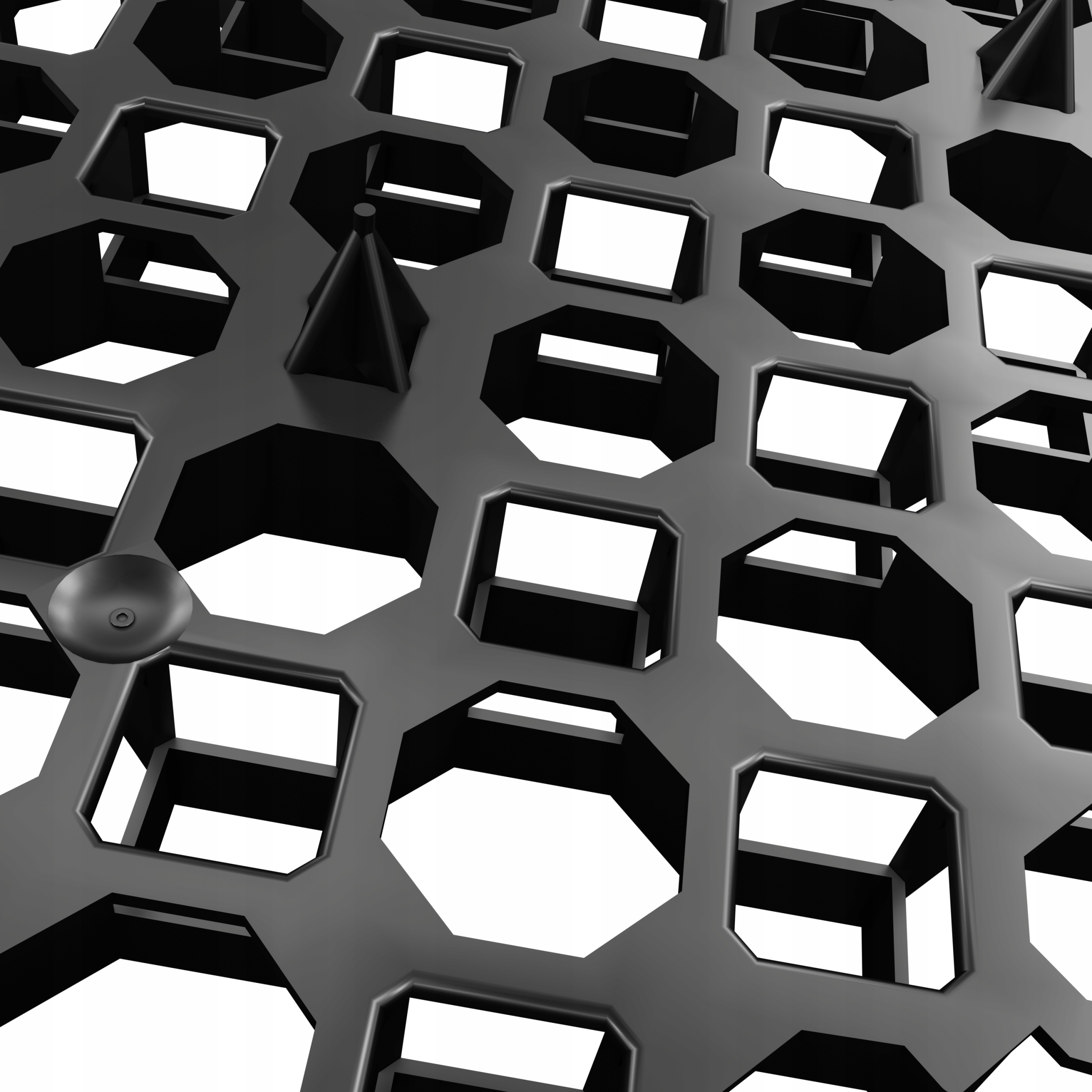- Укладання сітки: Помістіть стабілізуючу сітку на підготовлену поверхню. Монтаж решітки дуже швидкий і простий. Окремі елементи решітки з'єднуються між собою за допомогою гачків (шипів), розташованих знизу на двох краях. На нижній поверхні сітки також є 4 стабілізуючі шипи, які ми вдавлюємо в землю під час монтажу. Газонну сітку можна легко обробити простими ручними або електричними інструментами. Після укладання сітки вся поверхня вирівнюється за допомогою ущільнювача. Потім, залежно від ваших потреб, засипте сітку: землею, піском, гравієм або декоративним заповнювачем