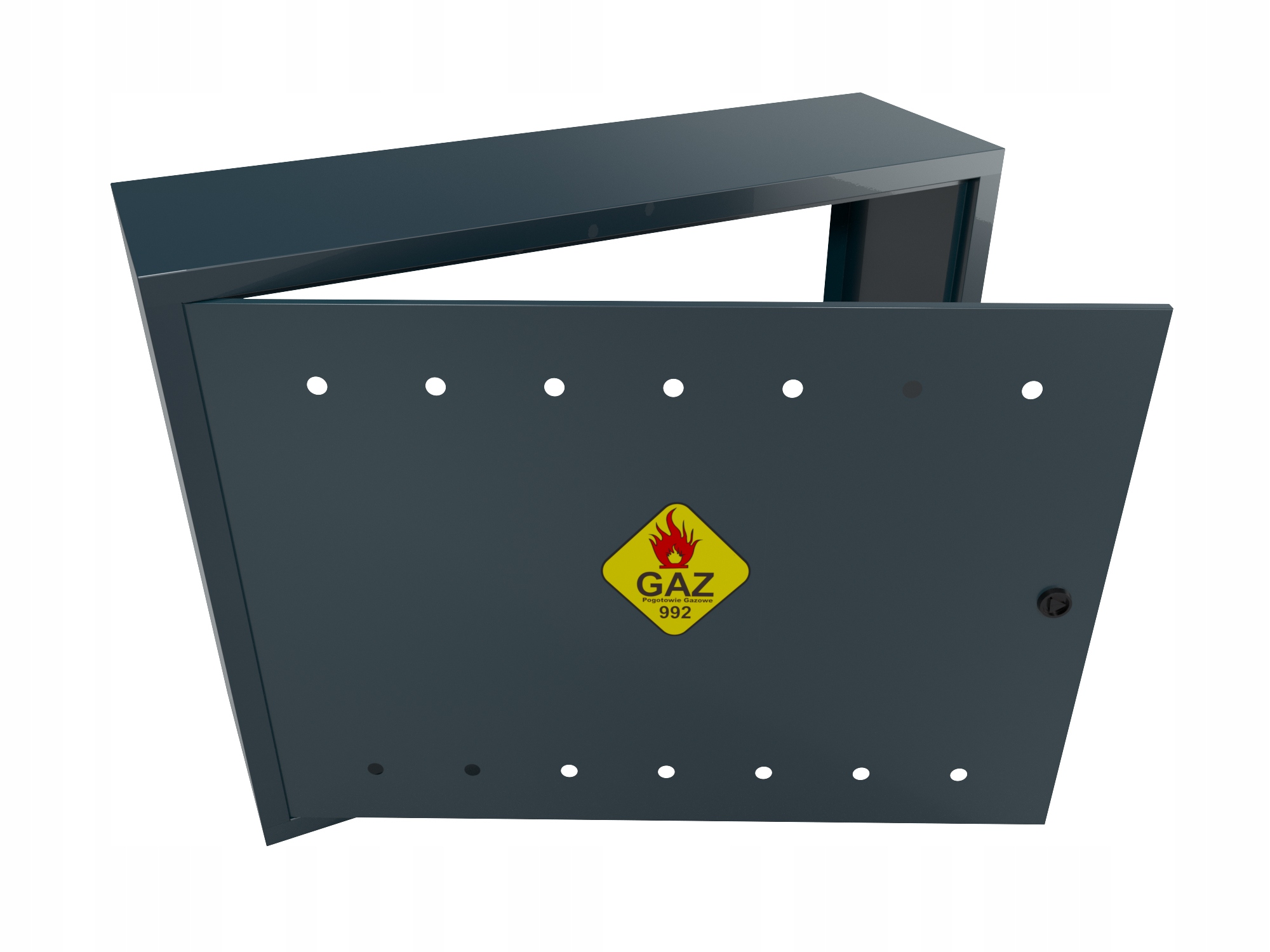 Газові шафи повністю виготовлені з оцинкованого металу товщиною 0,8 мм/0,6 мм. Крім того, він був пофарбований порошковою фарбою. Двері закриваються на циліндровий замок на ключ (один додатковий ключ).
