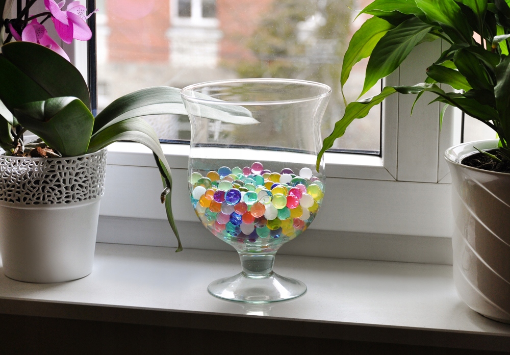 - ГІДРОГЕЛЬ - кульки виготовлені з гідрогелевої речовини. Це речовина, яка допомагає зволожувати квіти, а також як прикраса для прозорих ваз.