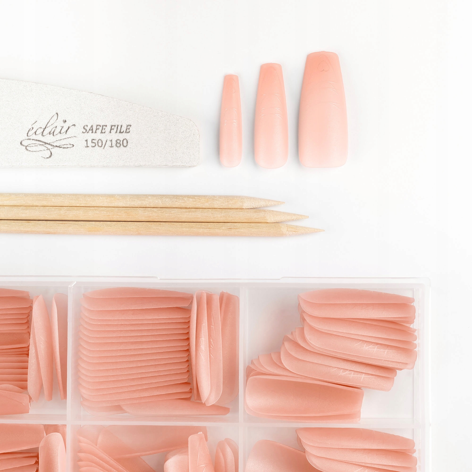 Набір Легкі підказки з гелем Balerina Nude до 360 порад розділених на 15 розмірів , що забезпечує повну гнучкість, коли наконечник -до натуральної пластини нігтів. Весь був укладений у суцільну упаковку з відсіками, що дозволяє швидко отримати доступ до необхідного розміру та підтримувати порядок на робочому місці.