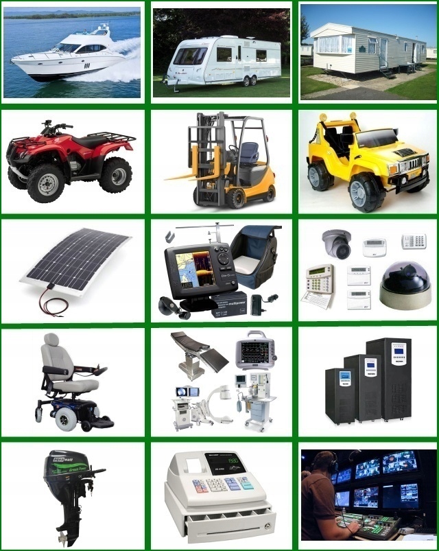 - електродвигуни (інвалідні візки, гольф-кари, навантажувачі)