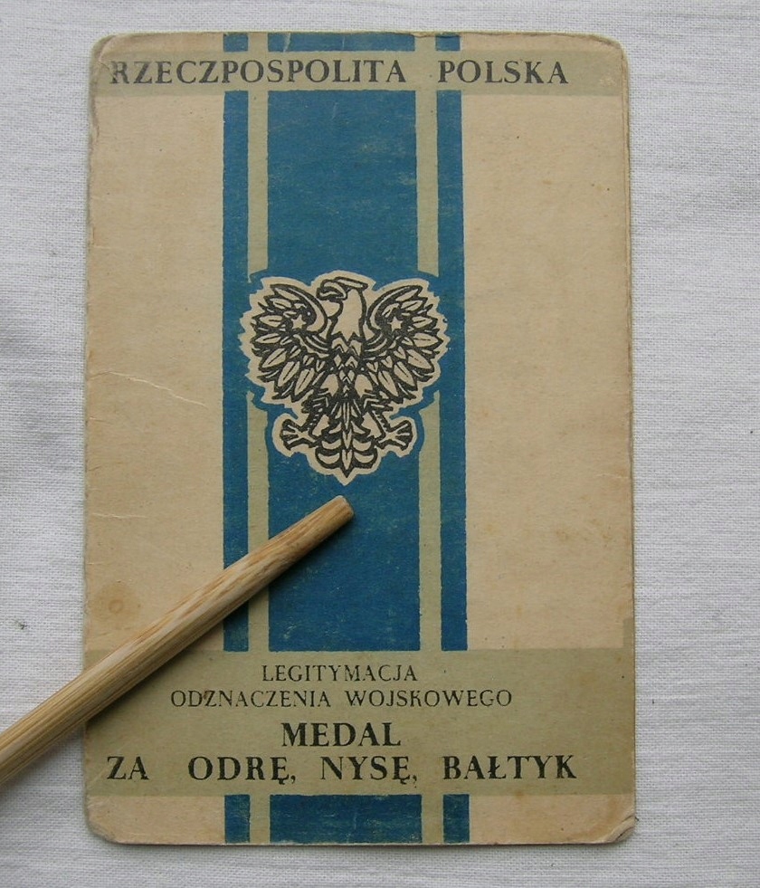 Gen. POPŁAWSKI - MEDAL ZA ODRĘ, NYSĘ, BAŁTYK - LEGITYMACJA - WROCŁAW 1946