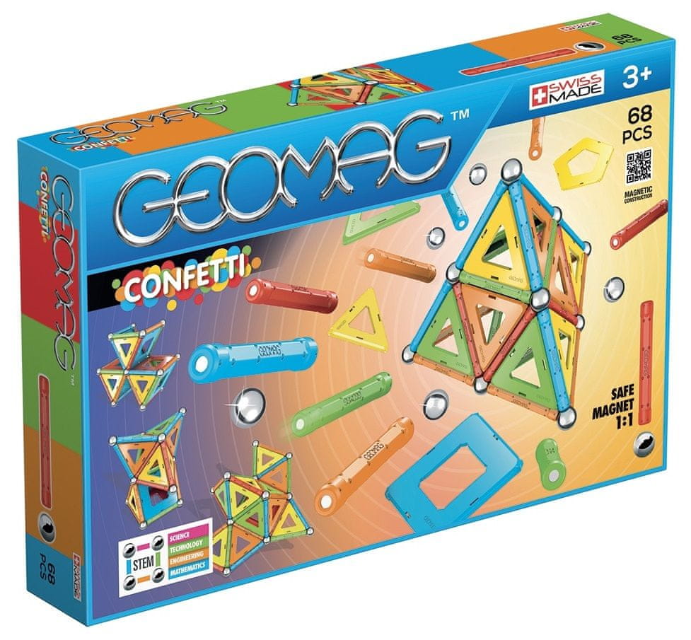 Однією з найпопулярніших серій блоків Geomag є класична кольорова серія з багатоколеними елементами. серія конфетті - це розширення кольорових серій, збагачених новими кольорами. Це чудова покупка на початку пригоди для тих, хто ще не мав справу з надзвичайними магнітними блоками.