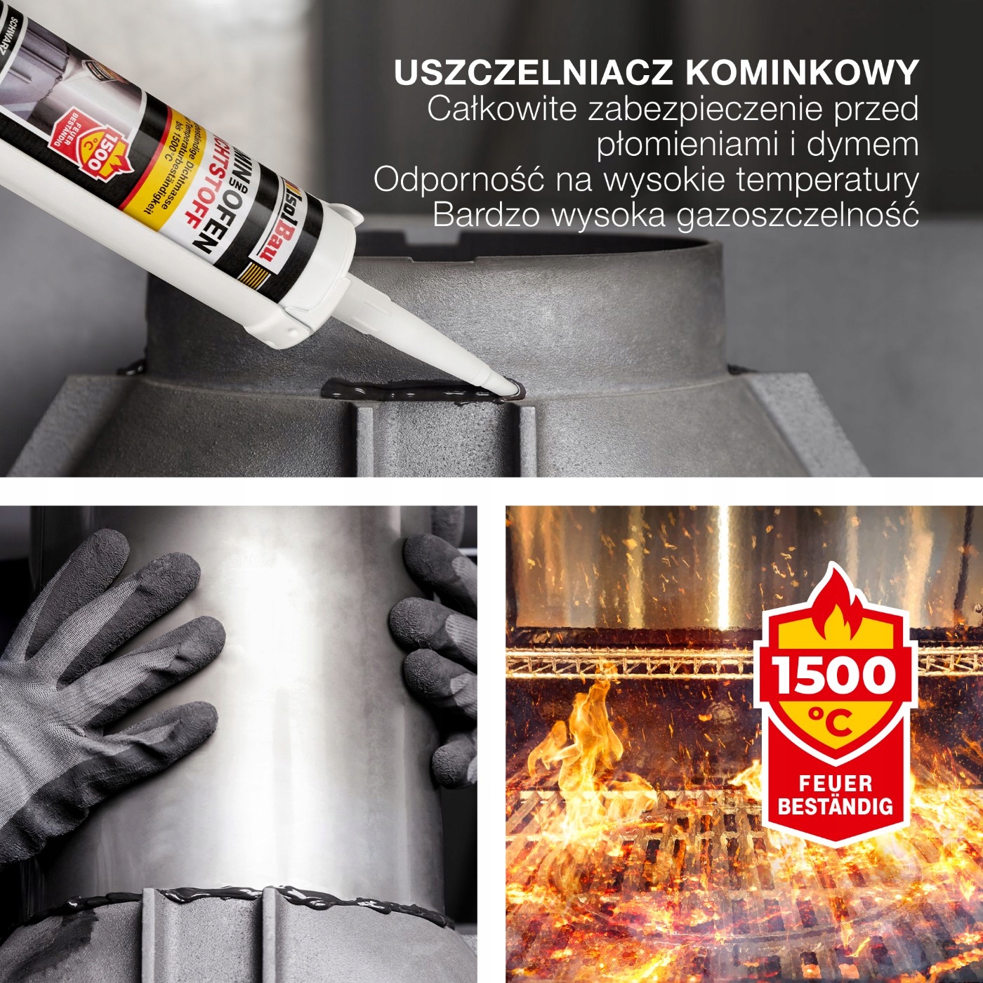 Герметизація місць, що піддаються впливу високих температур: каміни, димоходи, опалювальні прилади, решітки печей і грилів, вентиляційні, кондиціонувальні та витяжні установки, димоходи. Монтаж камінних заслінок, елементів в домашніх камінах, елементів в промислових печах. Ремонт тріщин, тріщин і пошкоджень будівельних матеріалів, що зазнали впливу високих температур і вогню.