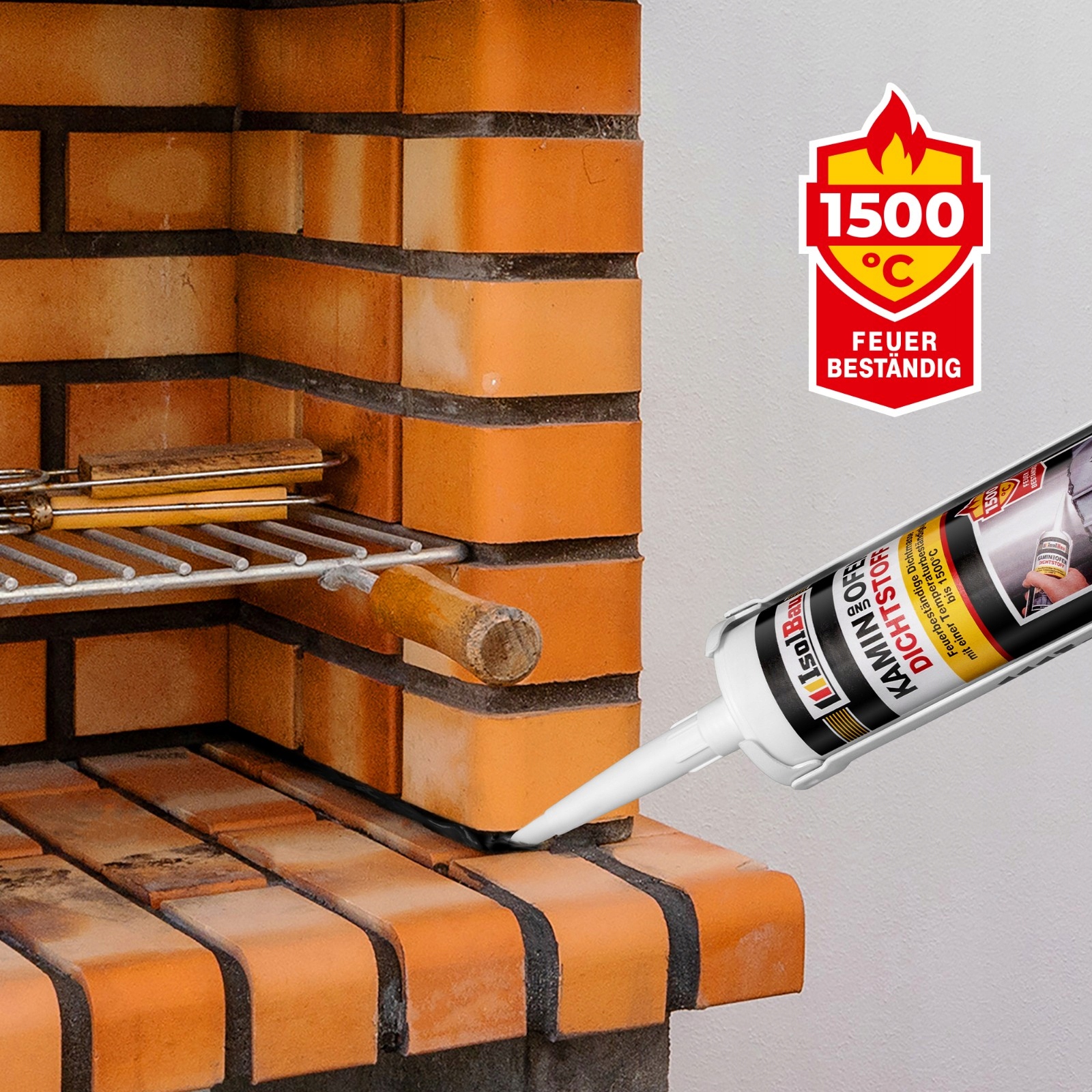 Камінний герметик - вогнетривка маса з формулою на основі силікату натрію. Призначений для остаточного ремонту і заповнення тріщин, щілин і дефектів в димоходах, топках, решітках і вентиляційних каналах. Камінний герметик характеризується дуже хорошою адгезією, стійкістю до високих температур (до 1500°C), включаючи: для металу, цегли, бетону. Після затвердіння маса має високу газонепроникність, створене з’єднання не стискається, не розширюється і не кришиться. Продукт стійкий до мінливих погодних умов і УФ-випромінювання, не містить азбесту.