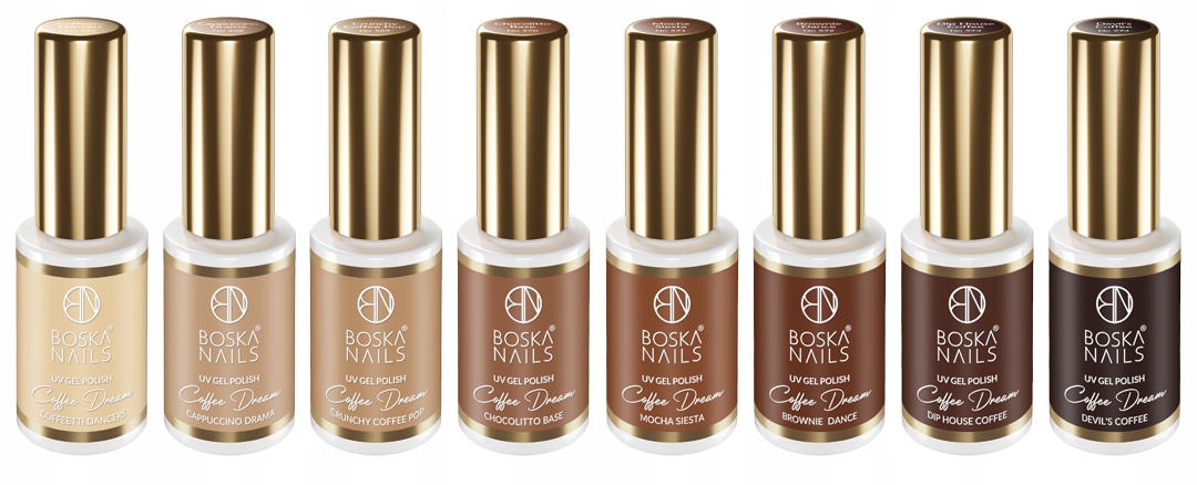 Ця колекція є колекцією наймодніших осінніх кольорів - коричневих. Делікатна як кава з молоком, солодкий, як гарячий шоколад, міцний, як подвійний еспресо. З домішкою білого, як хорошого капучино. Dream Coffee - це колекція з 8 лаків, які діють як хороша кава. Ви почнете з однієї стилізації, і не відомо, коли божественне, ви не зможете уявити без них. Ви можете придбати наймодніші лаки цієї осені в нових, божественних пляшках, що відповідають кольору до кольору, який ви знайдете в них.
