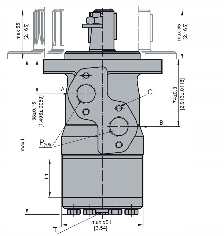 P (A, B): 2xG1/2 або 2xM22x1,5 - глибина 15 мм [0,59 дюйма]