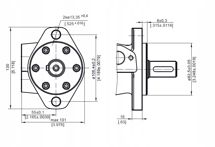 Мін. пусковий момент daNm [lb-in] при макс. втрати тиску рядок. 33,6 [2970] при макс. обробки втрат тиску 54,2 [4795]
